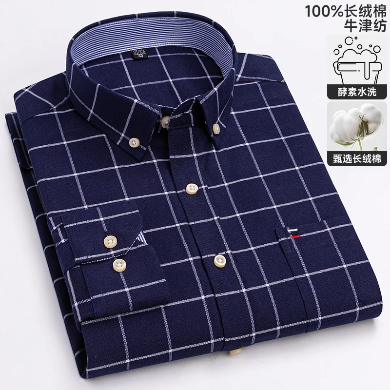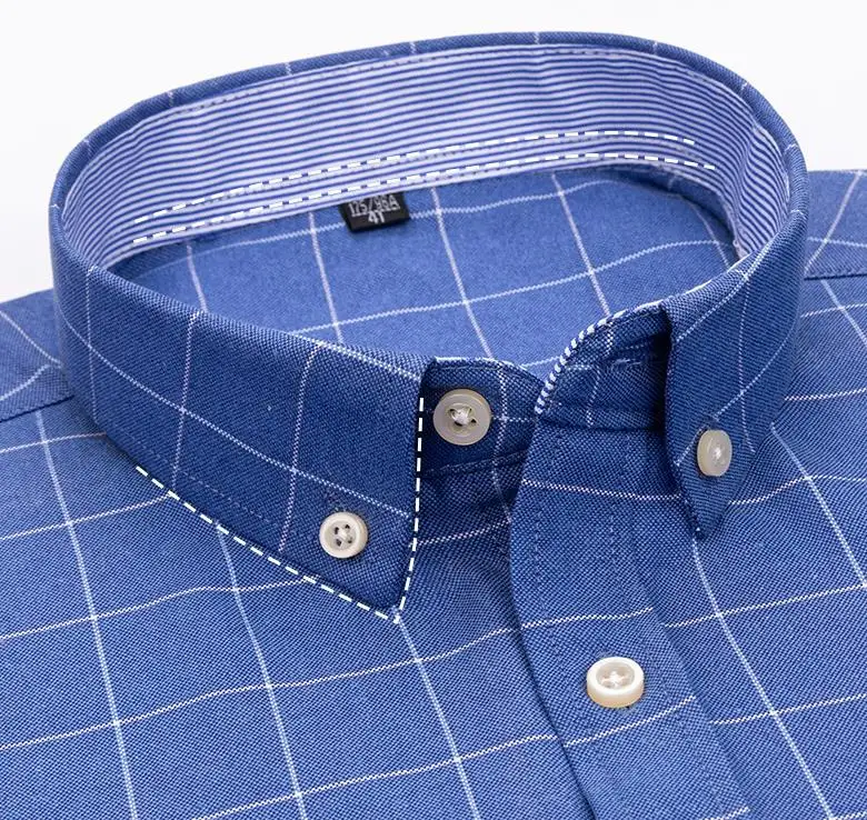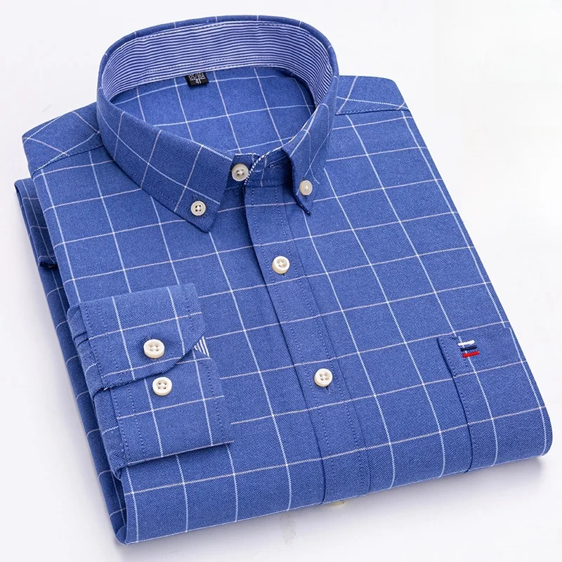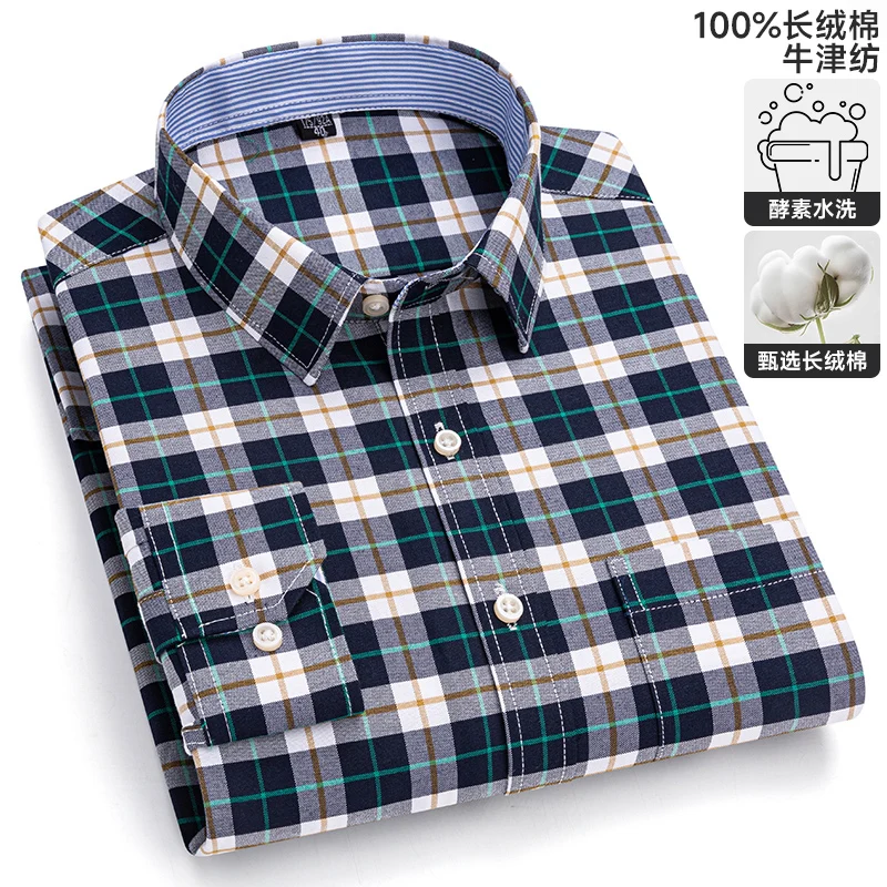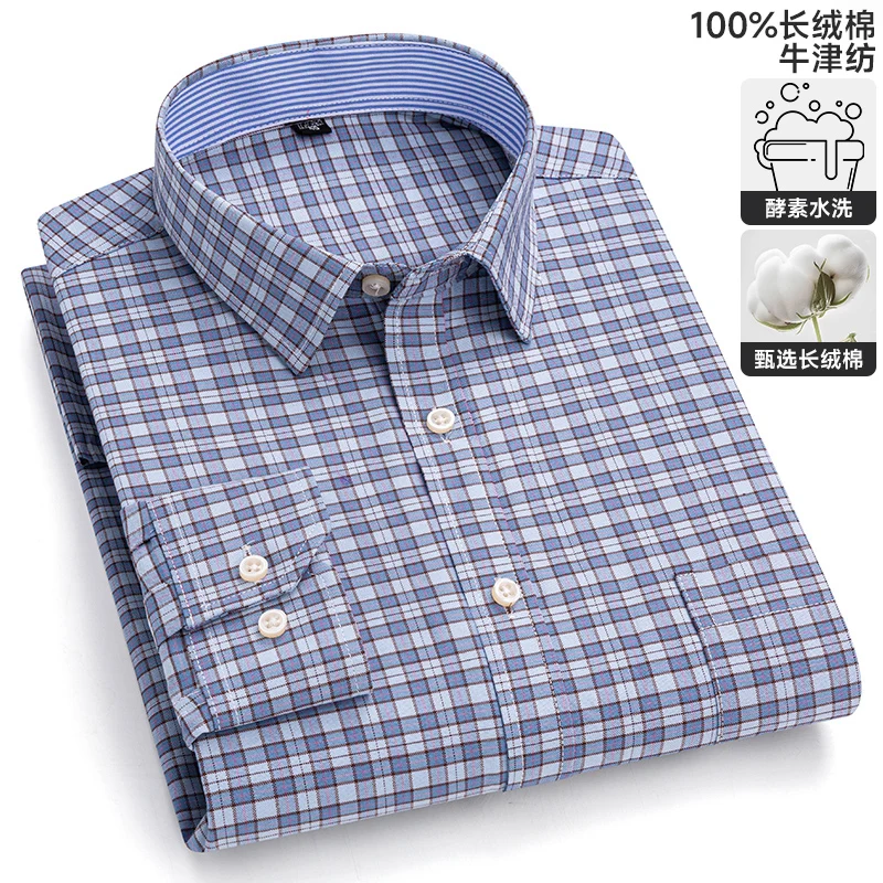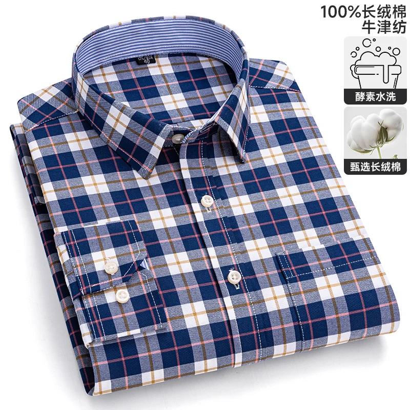 100% Cotton Oxford Men Plaid Shirts Male Business Casual High Quality Long sleeve Pocket Shirt for Men Button Shirt 5XL 6XL 7XL
