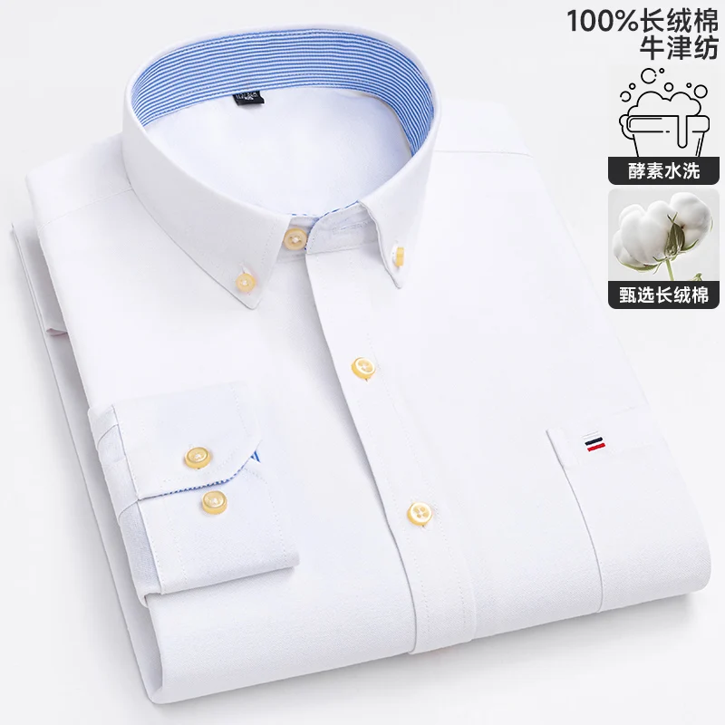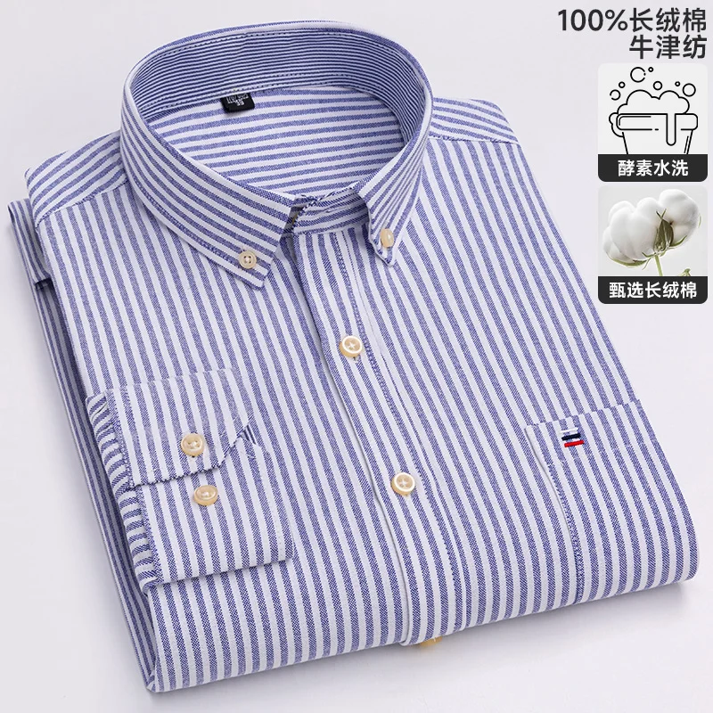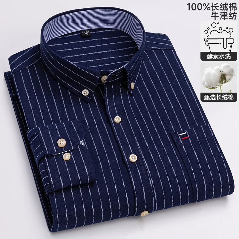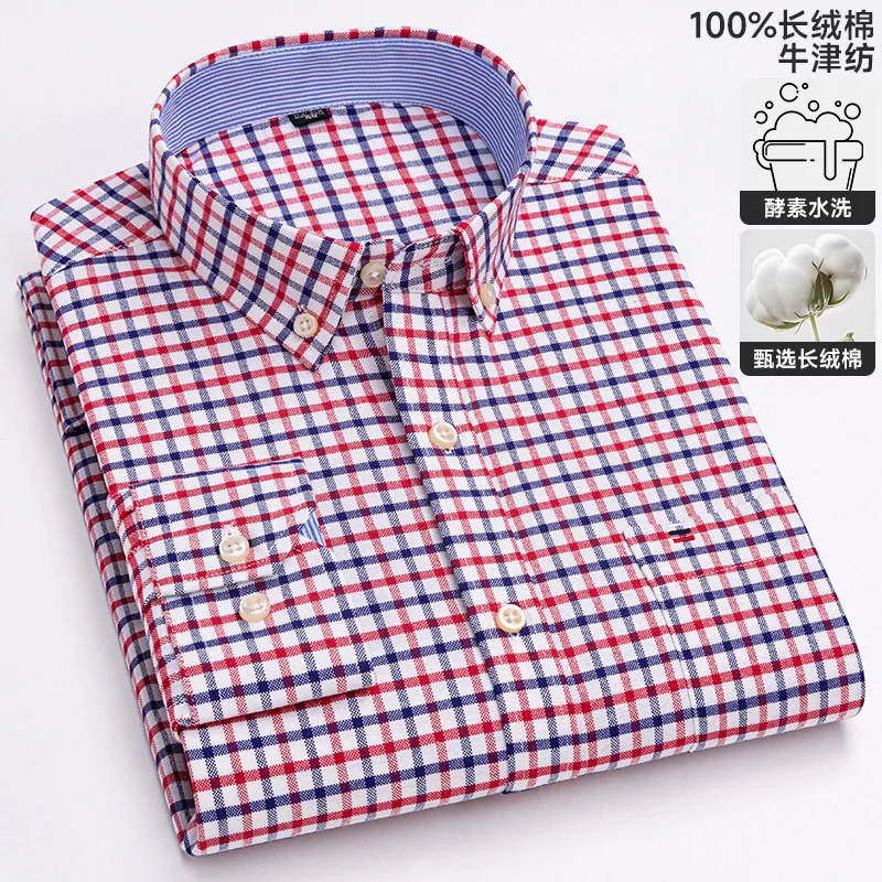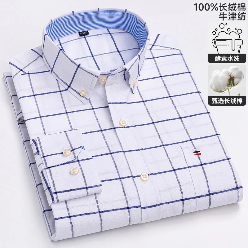 100% Cotton Oxford Men Plaid Shirts Male Business Casual High Quality Long sleeve Pocket Shirt for Men Button Shirt 5XL 6XL 7XL