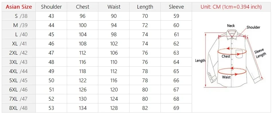 2) Normally, the shirt size should be bigger than your body size. you can check your usual shirt. if your body chest is 100cm, we suggest you choose shirt with 104cm or 108cm. This product is a slim fit, it is recommended to buy one size larger than usual.