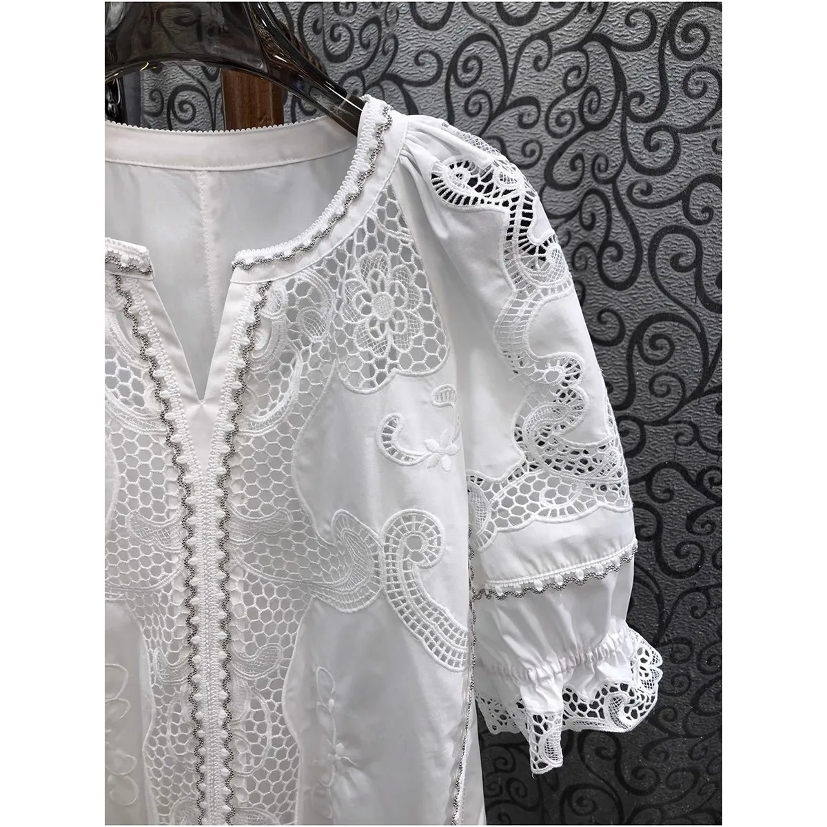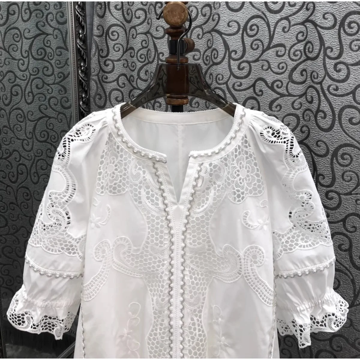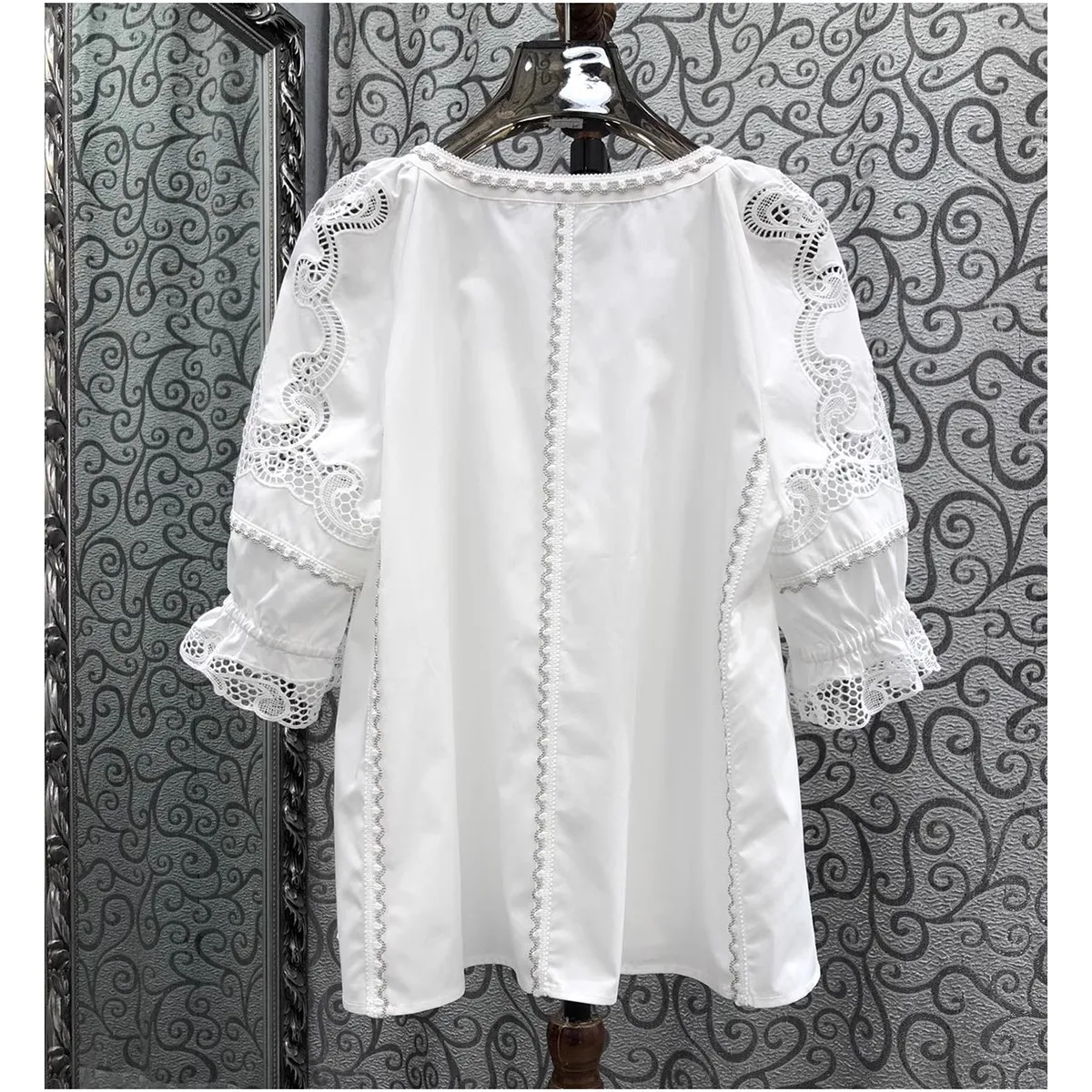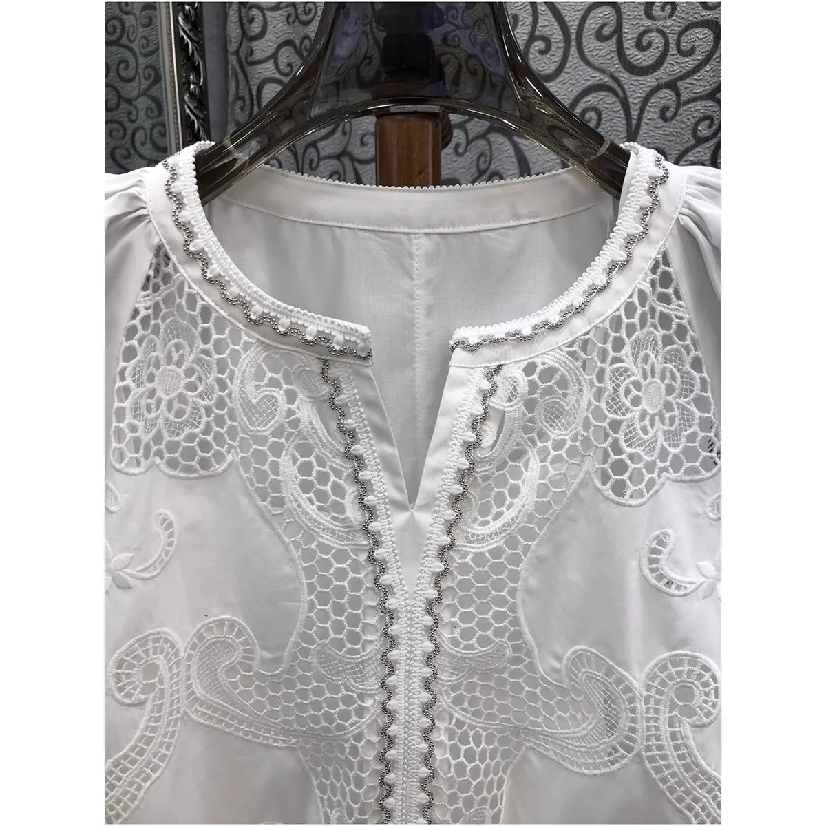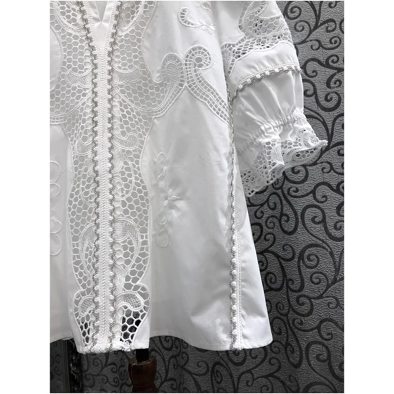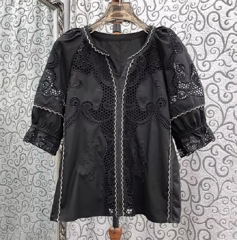 This cotton blouse is not only stylish but also practical. Thanks to its breathable cotton fabric, you’ll feel comfortable even on the hottest days. The embroidered patchwork adds a unique touch, making it a blouse you can dress up or down. Whether you’re going for a casual look or aiming for something more polished, this versatile piece will fit right into your wardrobe.