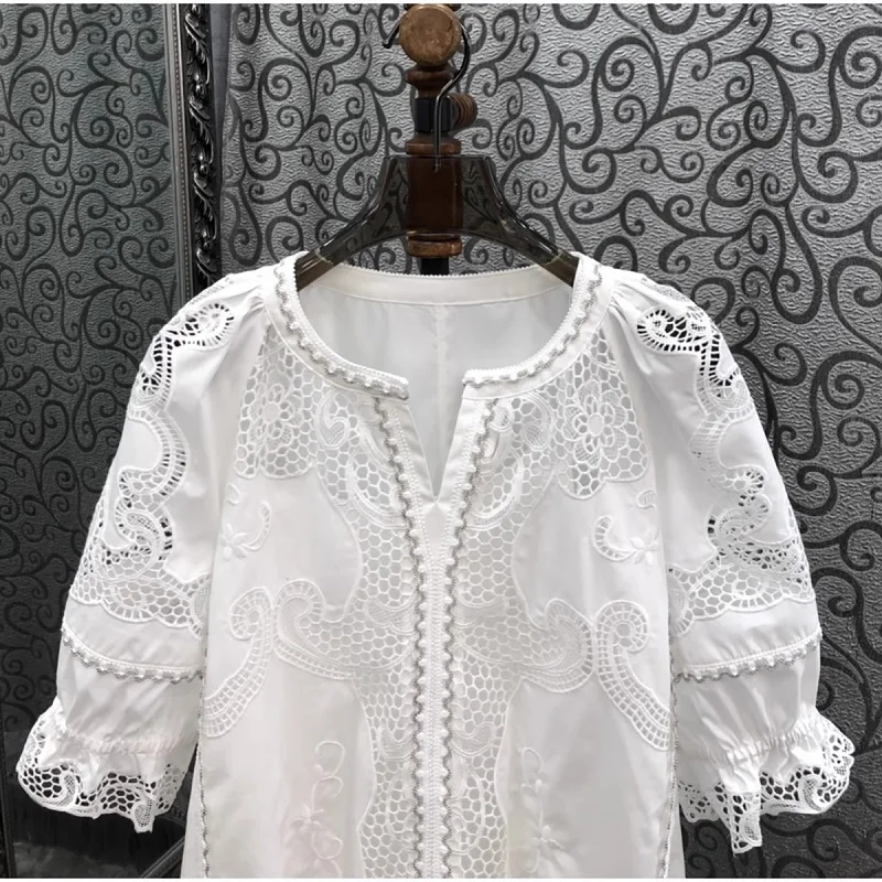 Looking for a comfortable yet stylish blouse that you can wear during the summer? This 100% cotton pullover blouse is designed to keep you cool, breathable, and effortlessly chic. Made with soft natural cotton fabric and decorated with delicate embroidery, it combines everyday comfort with a fashionable high-street style.