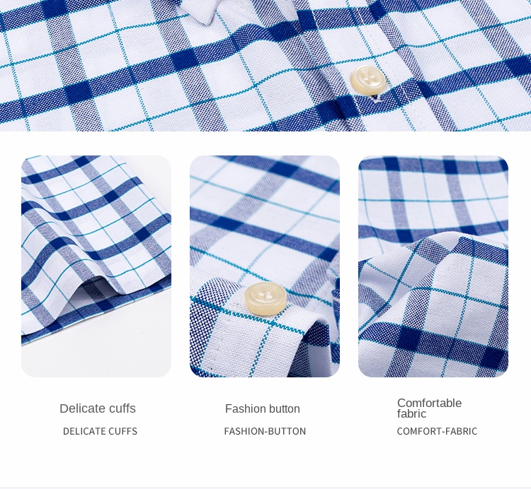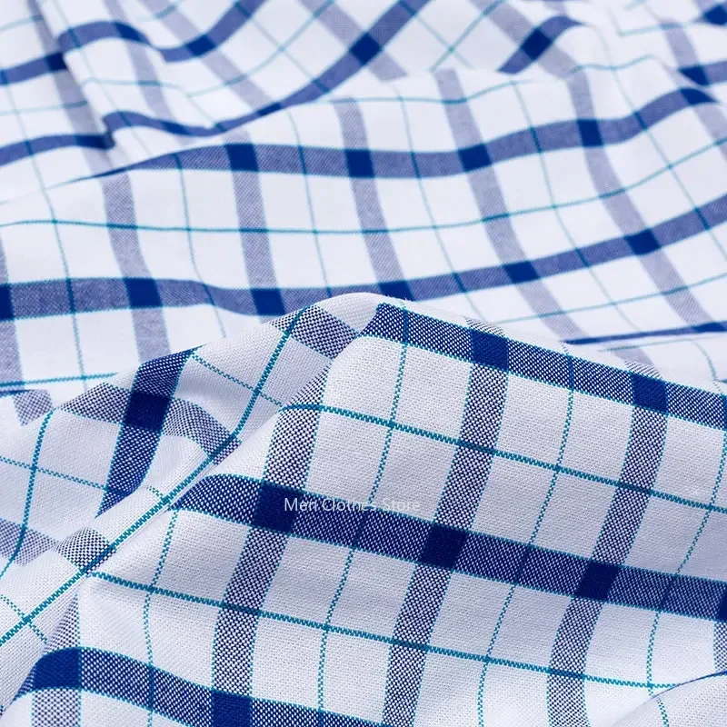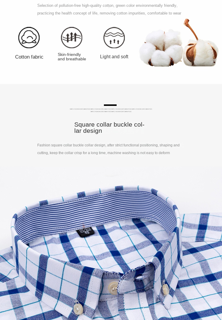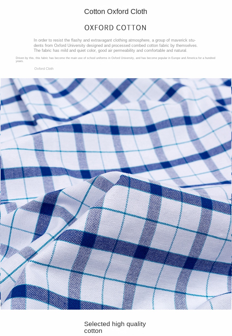2024 100% Pure Cotton Men’s Oxford Short Sleeve Square Collar Soild Plaid Striped Summer Casual Shirts Single Pocket Shirt