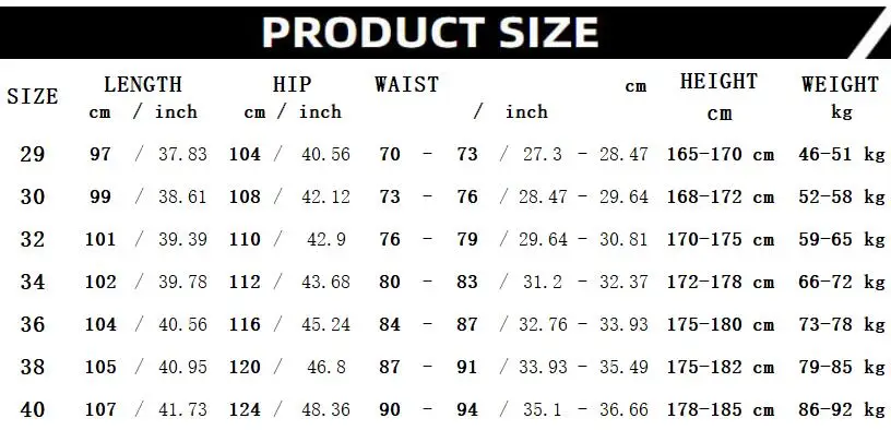 - Size: 29 30 32 34 36 38 40