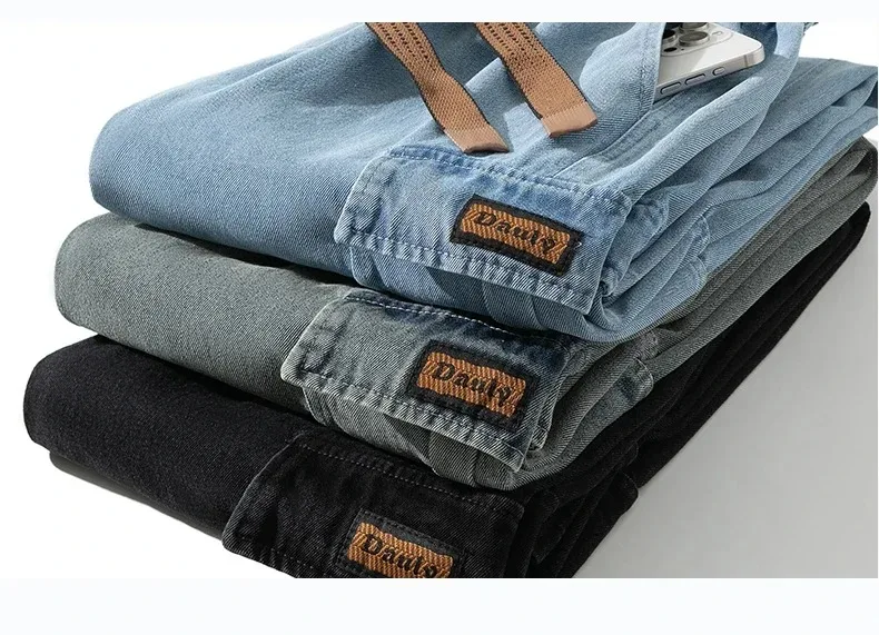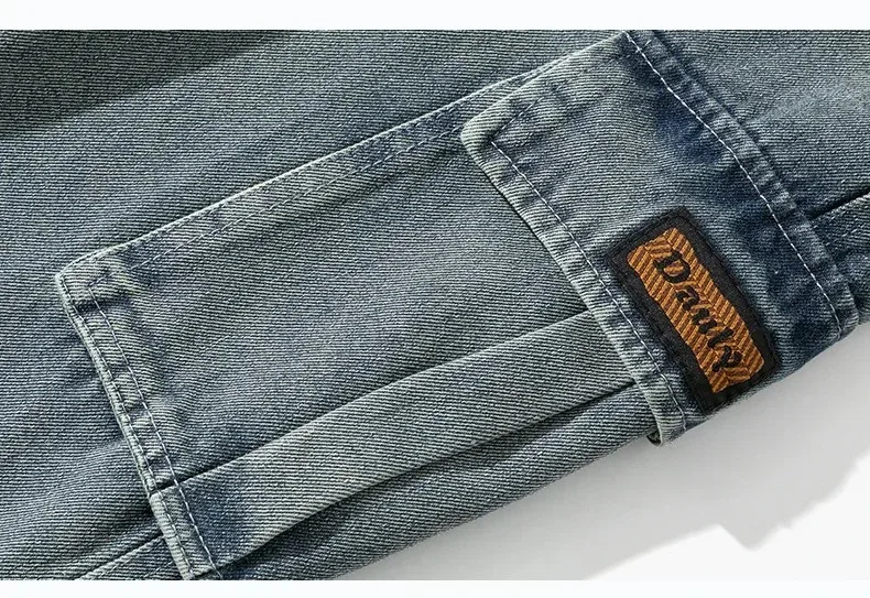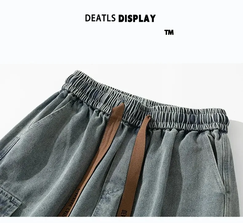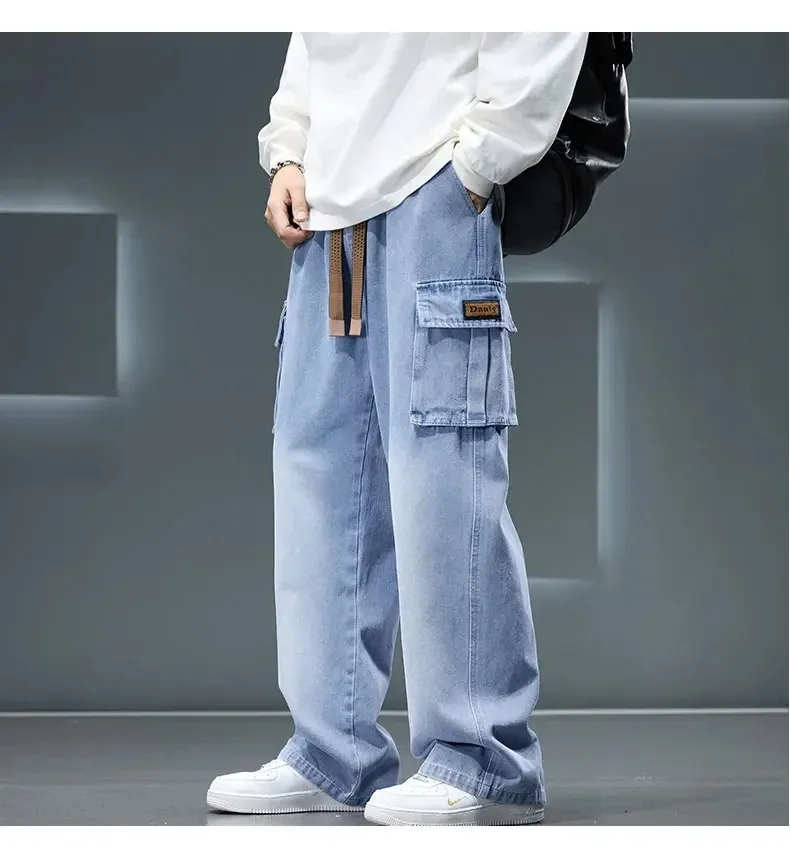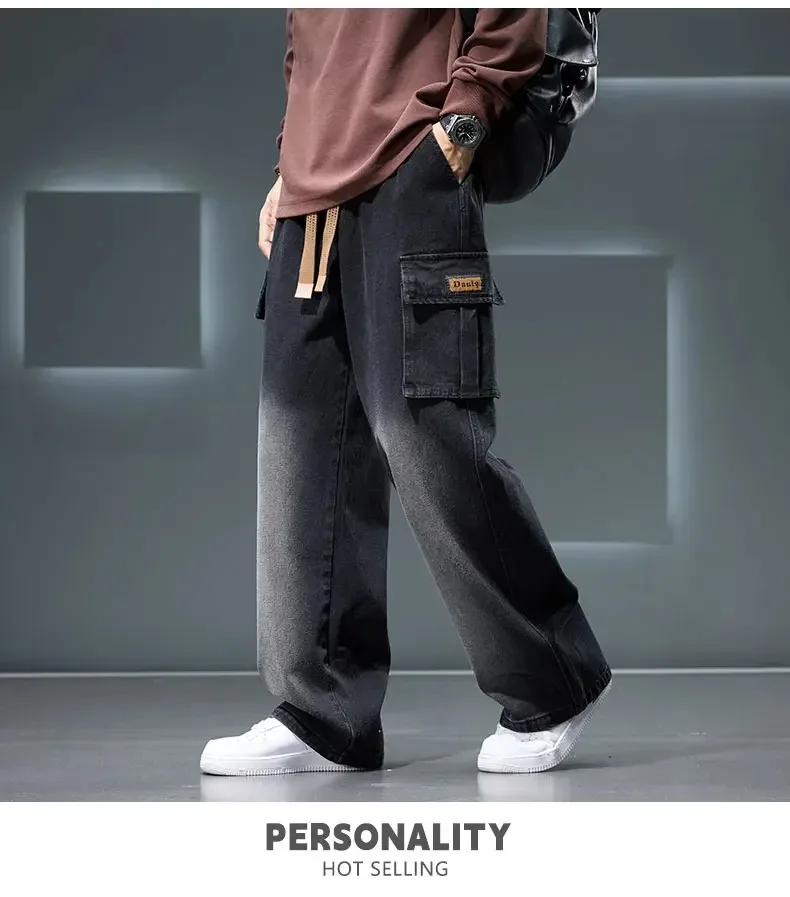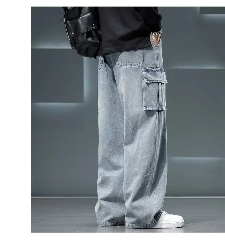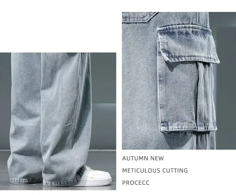 8XL Jeans New Wide Leg Washing Pants Men Trousers Neutral Solid Color Loose Casual Korean Fashion Pocket Plus Size Cargo Pant