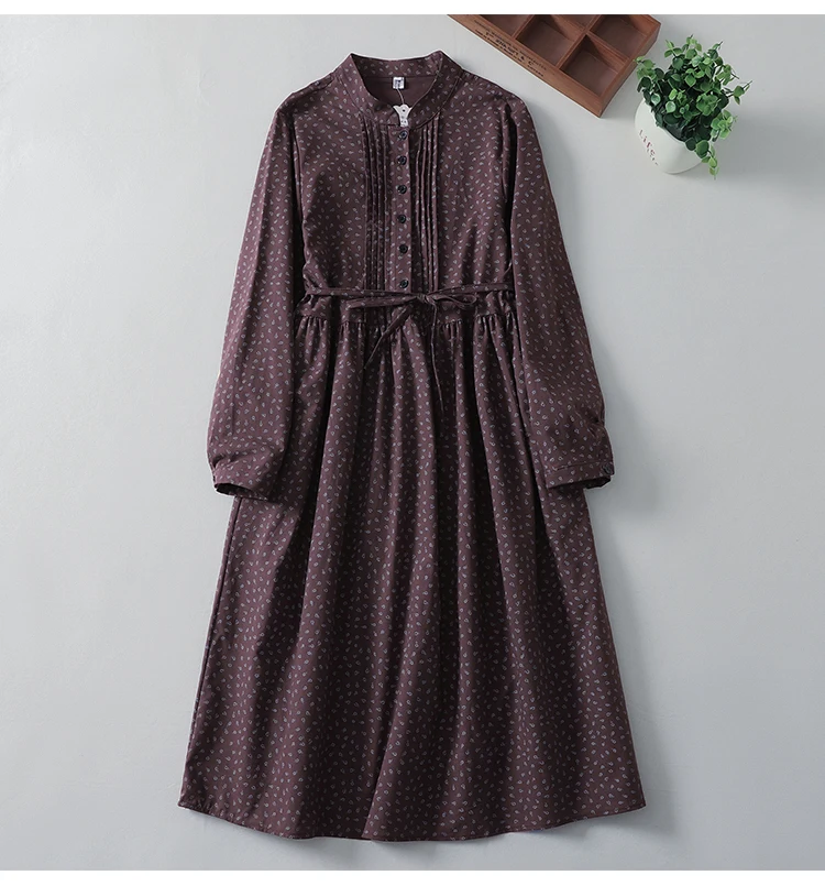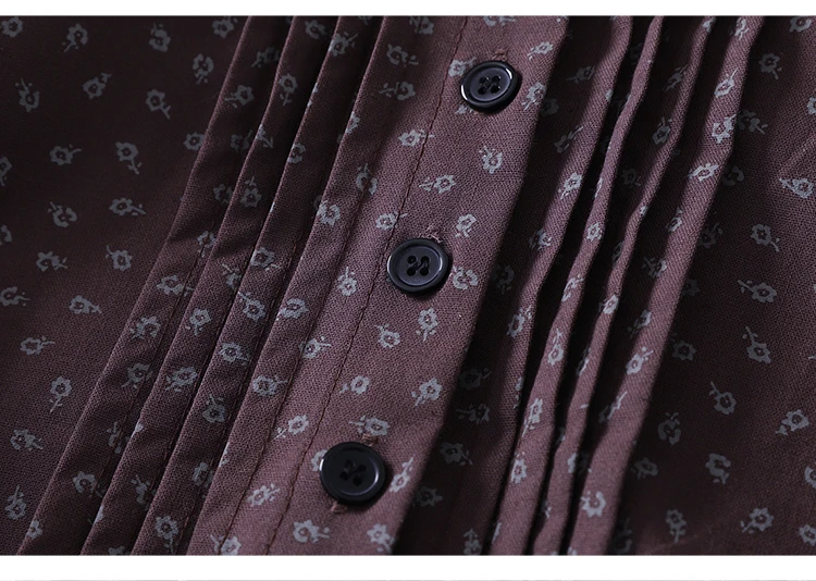 This dress features a classic O-neckline and full-length sleeves for coverage and style. Moreover, its loose waist and mid-calf length create a graceful silhouette that flatters most body shapes. The printed pattern adds visual appeal without overpowering the design.