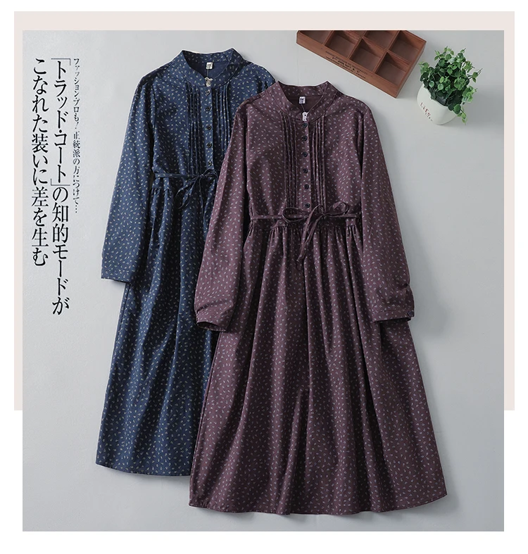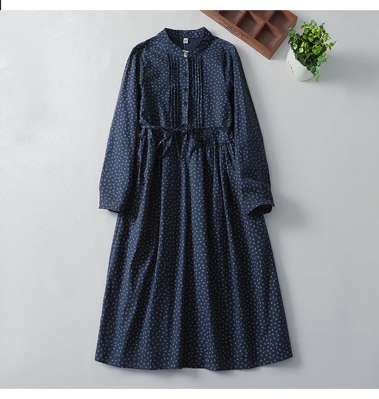 • Cotton and Linen Loose Mid-Calf Office Lady Dress