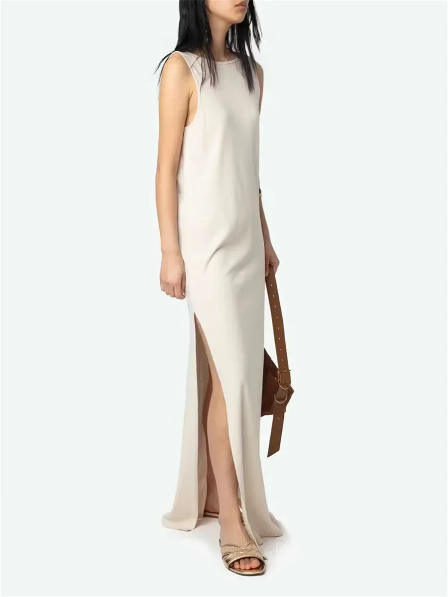 Elevate your summer wardrobe with this lightweight cotton-linen sleeveless dress. Designed for women who value comfort and style, it combines a classic A-line silhouette with modern high-street fashion elements. This dress is perfect for warm weather, casual outings, and semi-formal events.