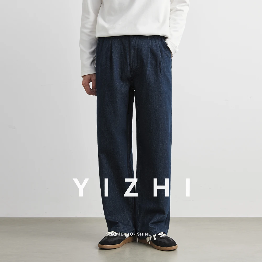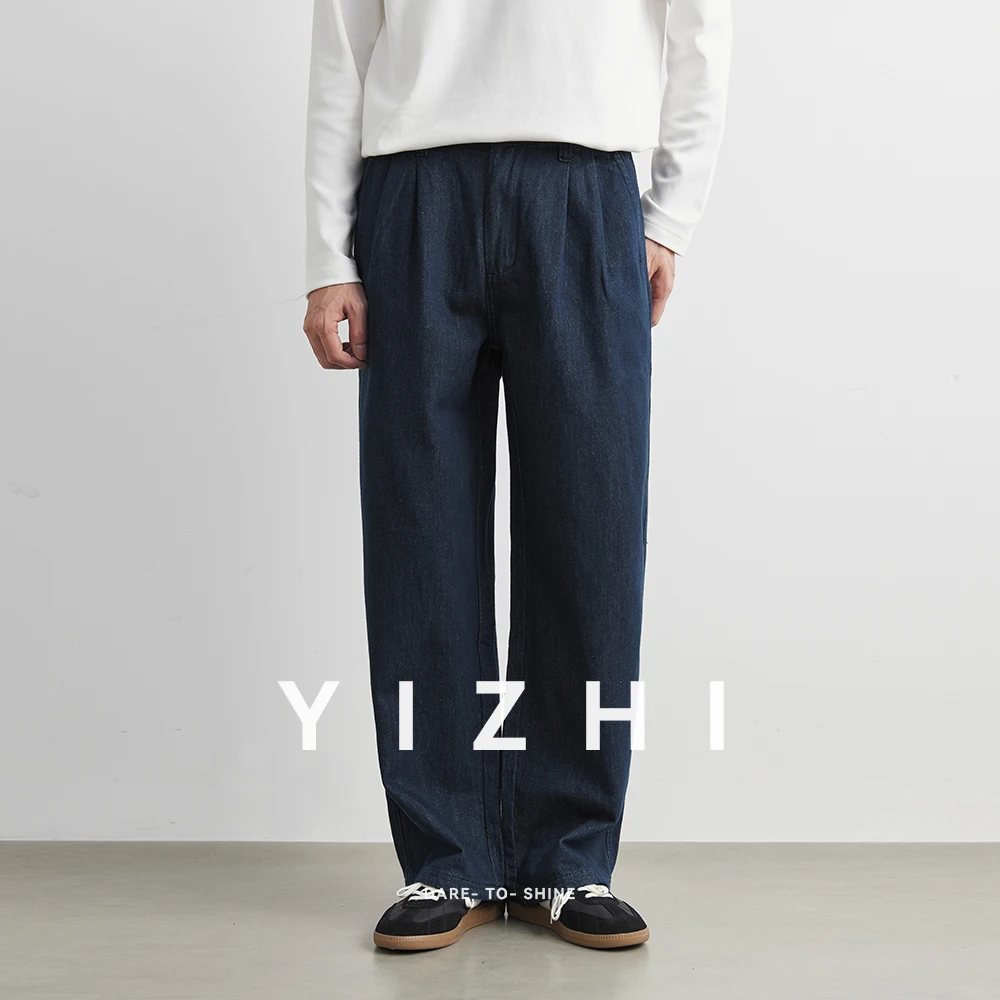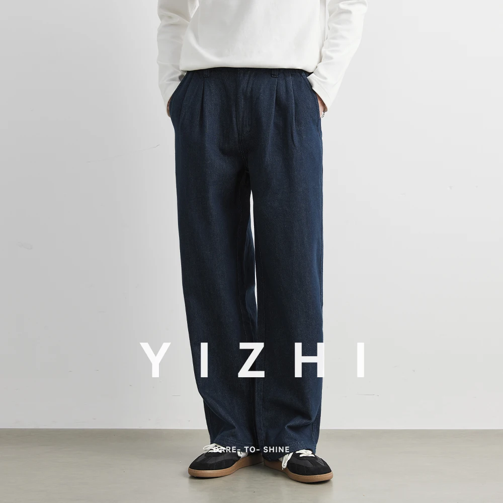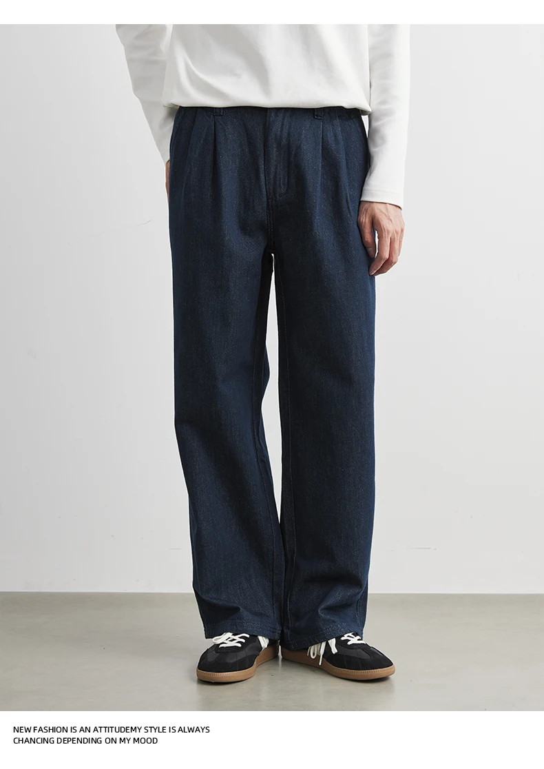 Men’s 100% Cotton Casual Loose-Fit Dark Blue Trousers Jeans