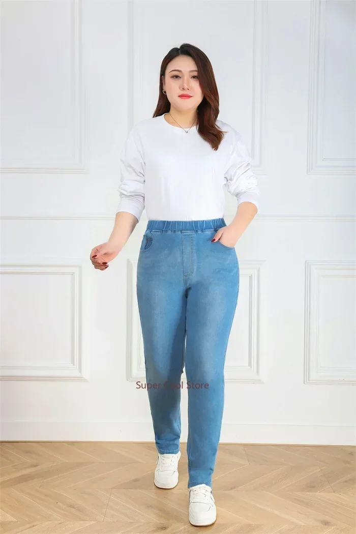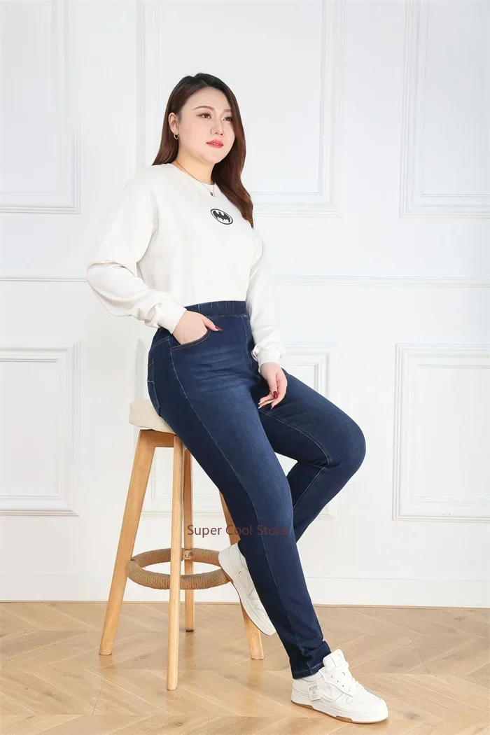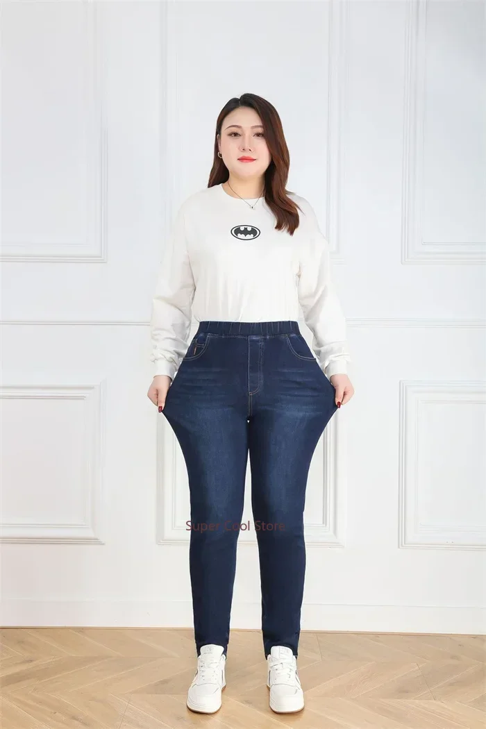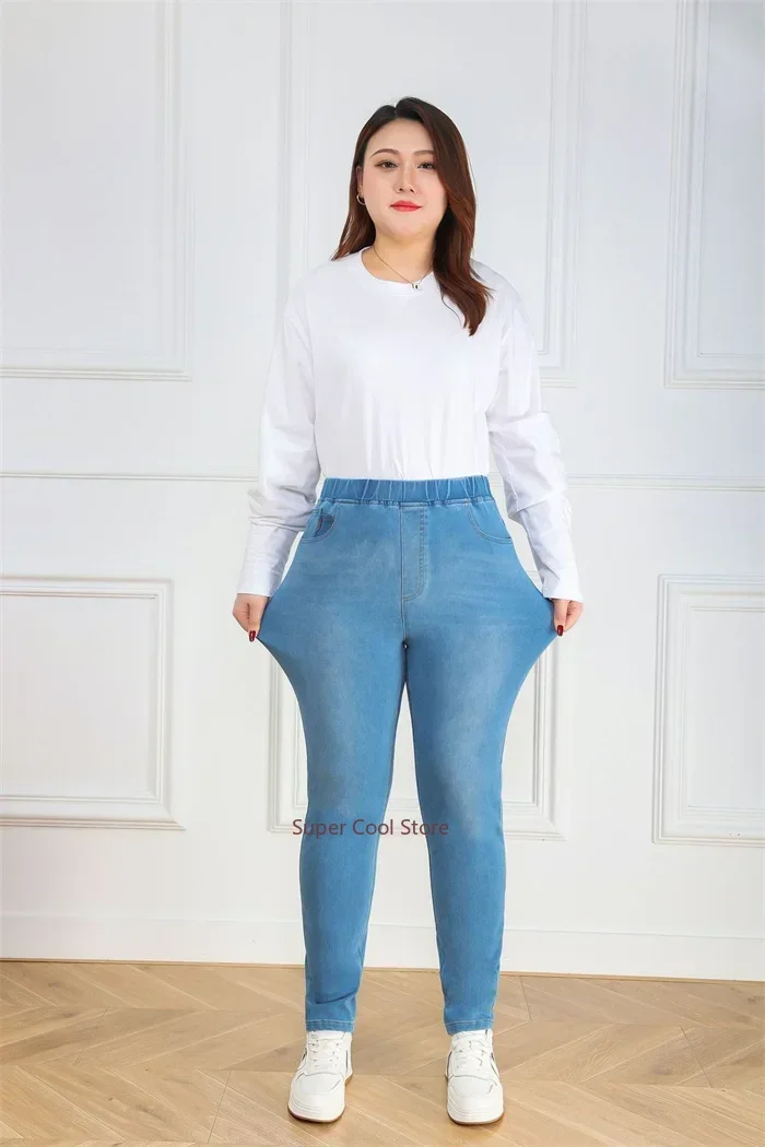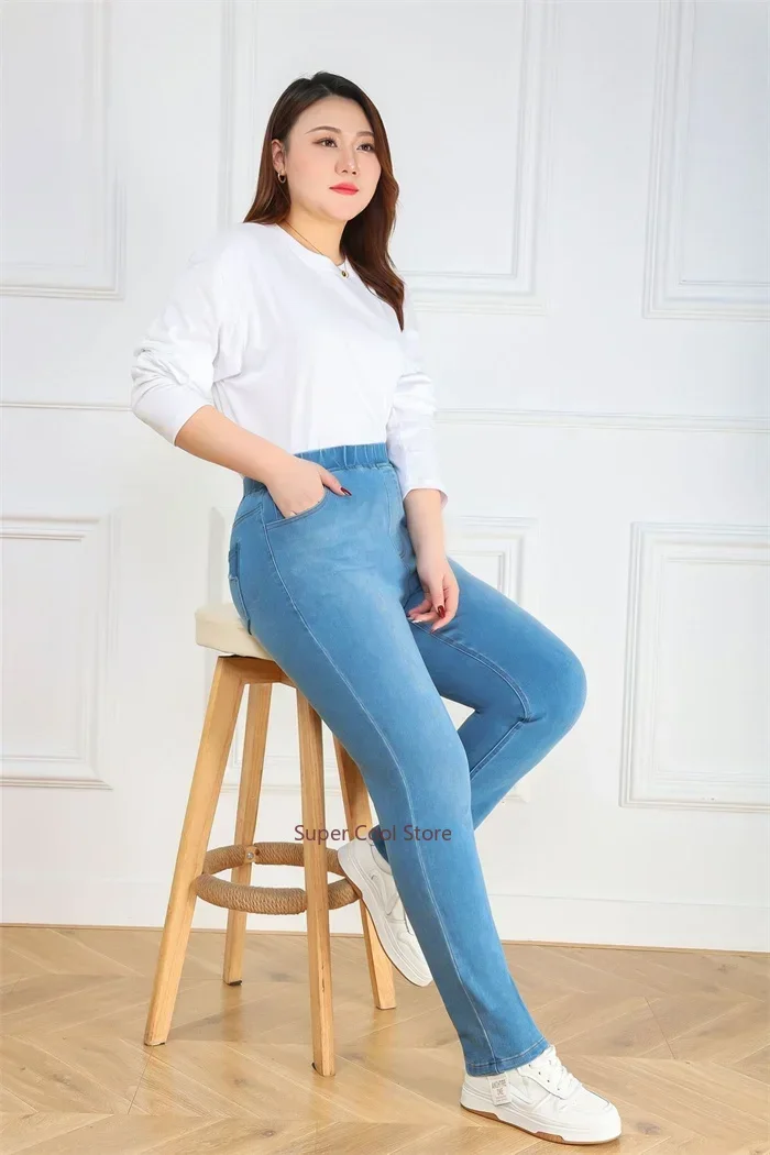 Plus-Size 7XL-9XL Women’s High-Waist Pencil Denim Pants