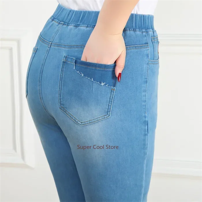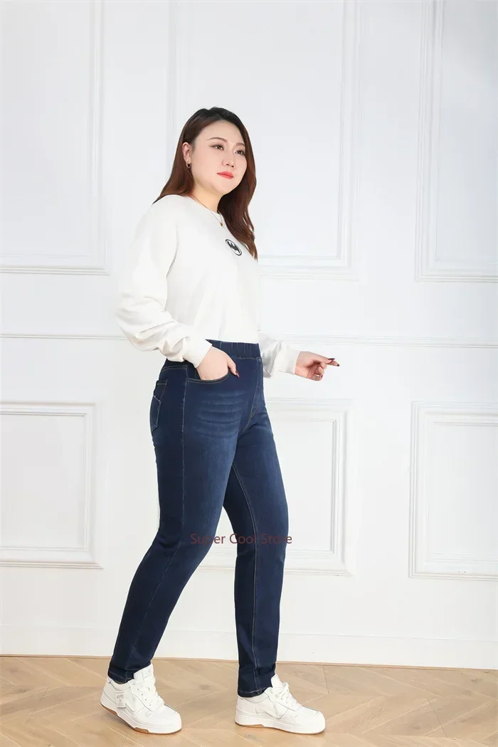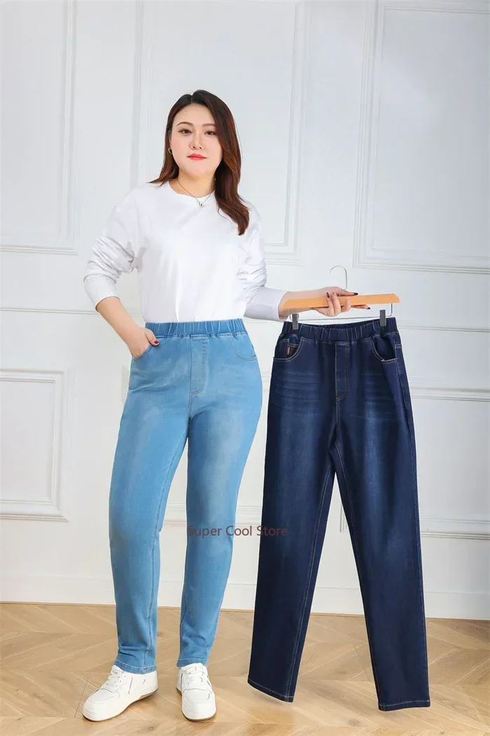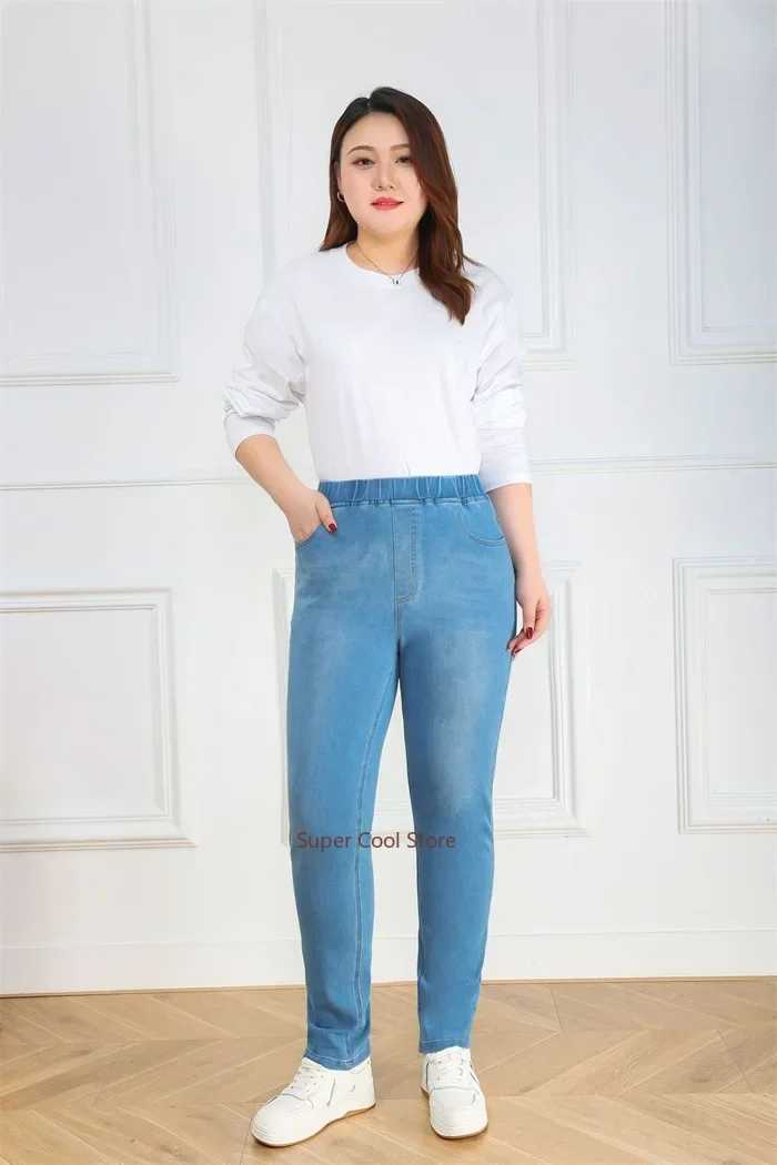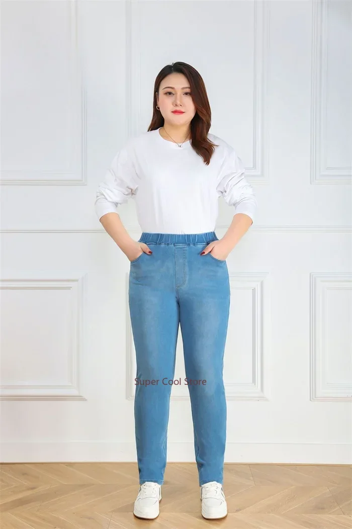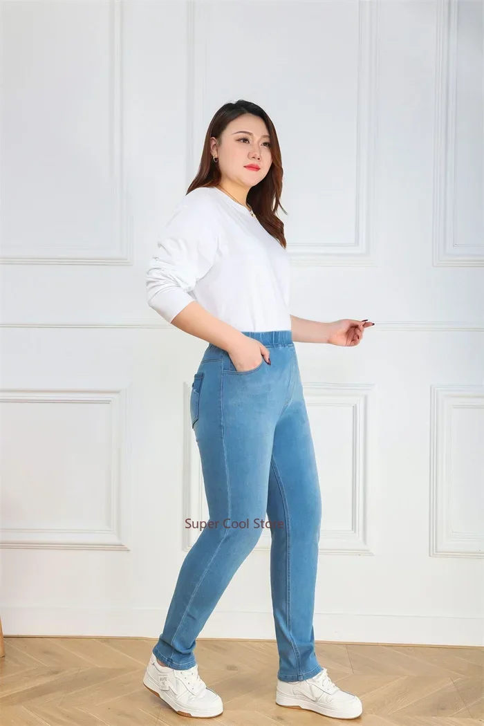 Plus-Size 7XL-9XL Women’s High-Waist Pencil Denim Pants