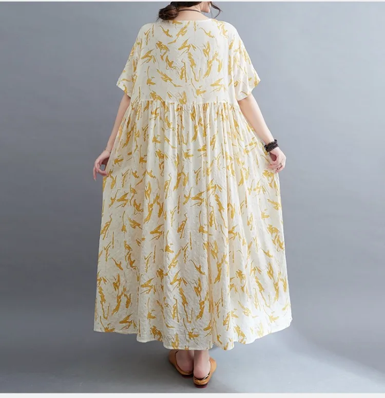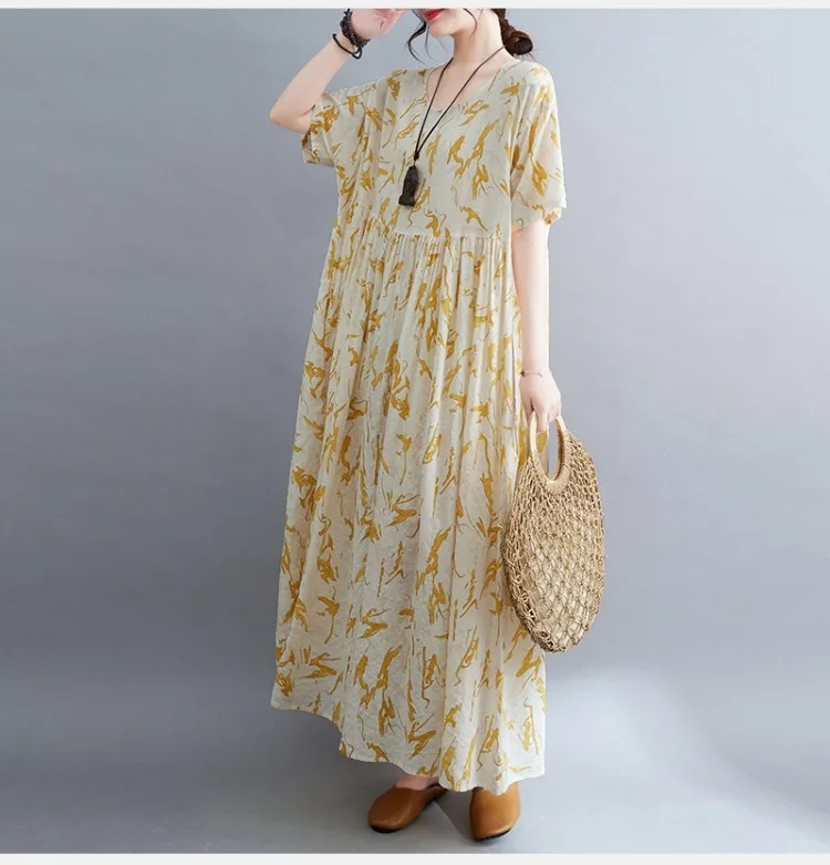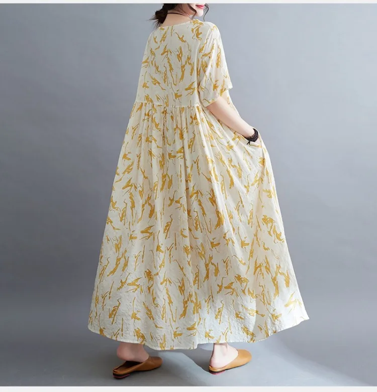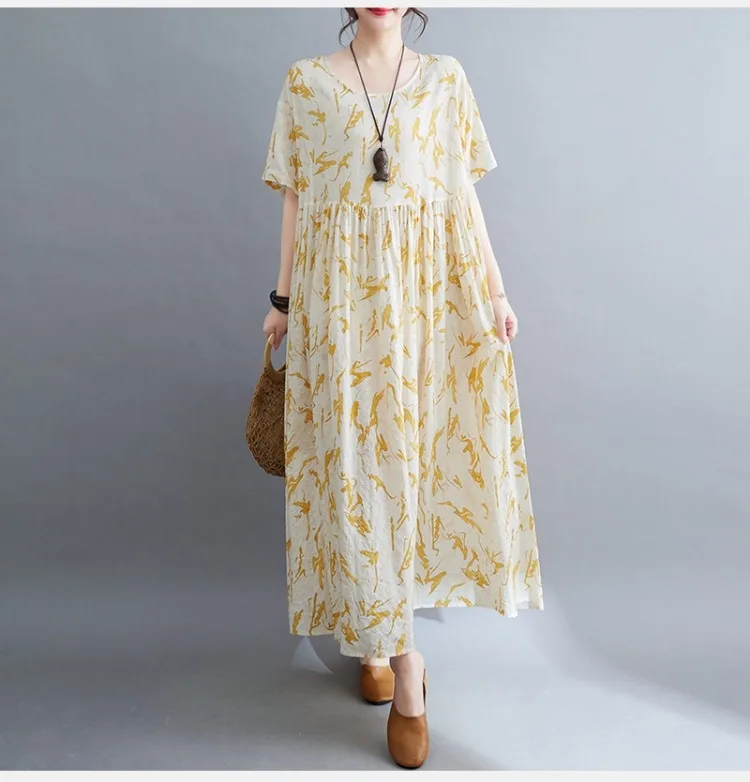 Upgrade your summer wardrobe with this elegant cotton-linen dress, designed for modern women who appreciate comfort and style. Its mid-calf length, loose silhouette, and casual design make it suitable for a variety of occasions, from daily wear to weekend outings.