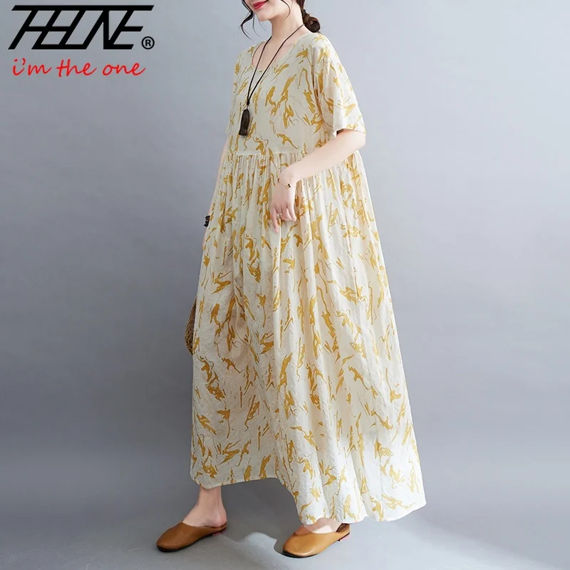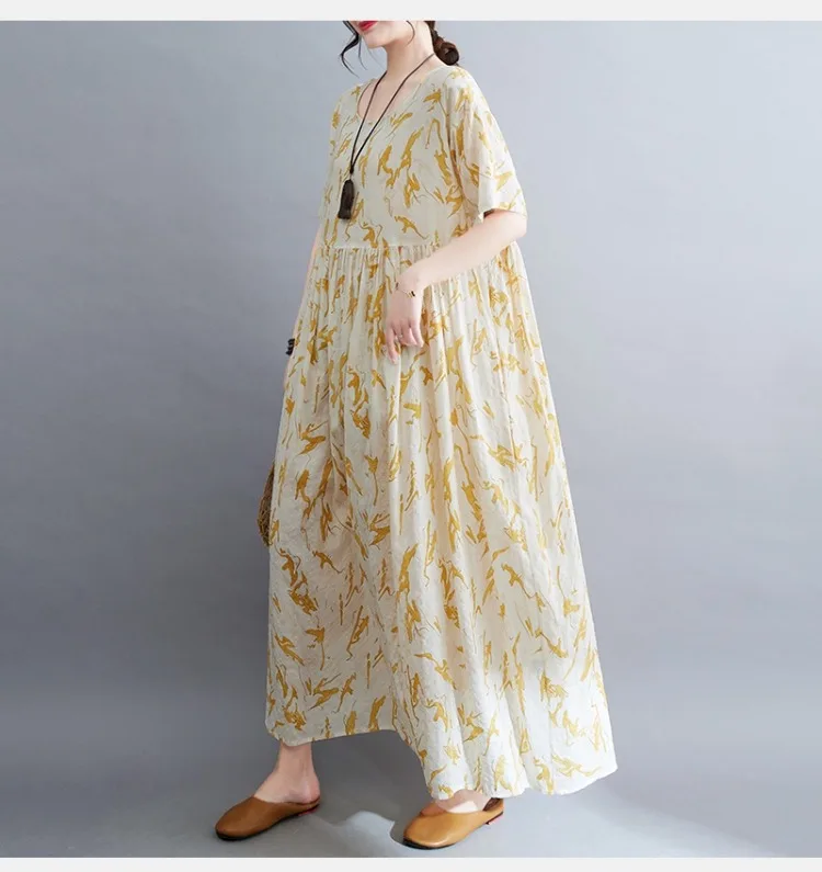 Upgrade your summer wardrobe with this elegant cotton-linen dress, designed for modern women who appreciate comfort and style. Its mid-calf length, loose silhouette, and casual design make it suitable for a variety of occasions, from daily wear to weekend outings.