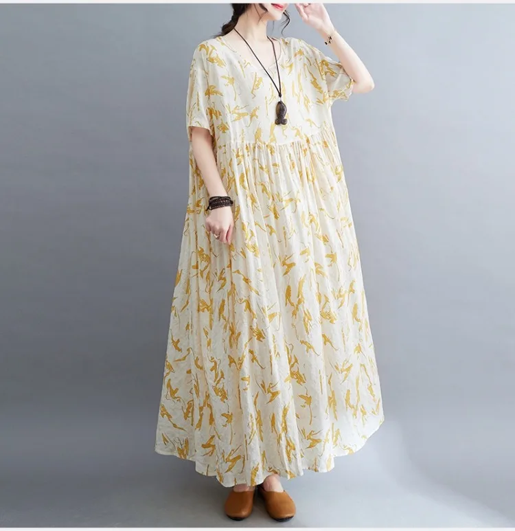 Crafted from a high-quality cotton and linen blend, this dress is soft, breathable, and lightweight. The natural fibers ensure comfort during warm spring and summer days, while the non-stretch fabric maintains its shape and provides a relaxed fit.