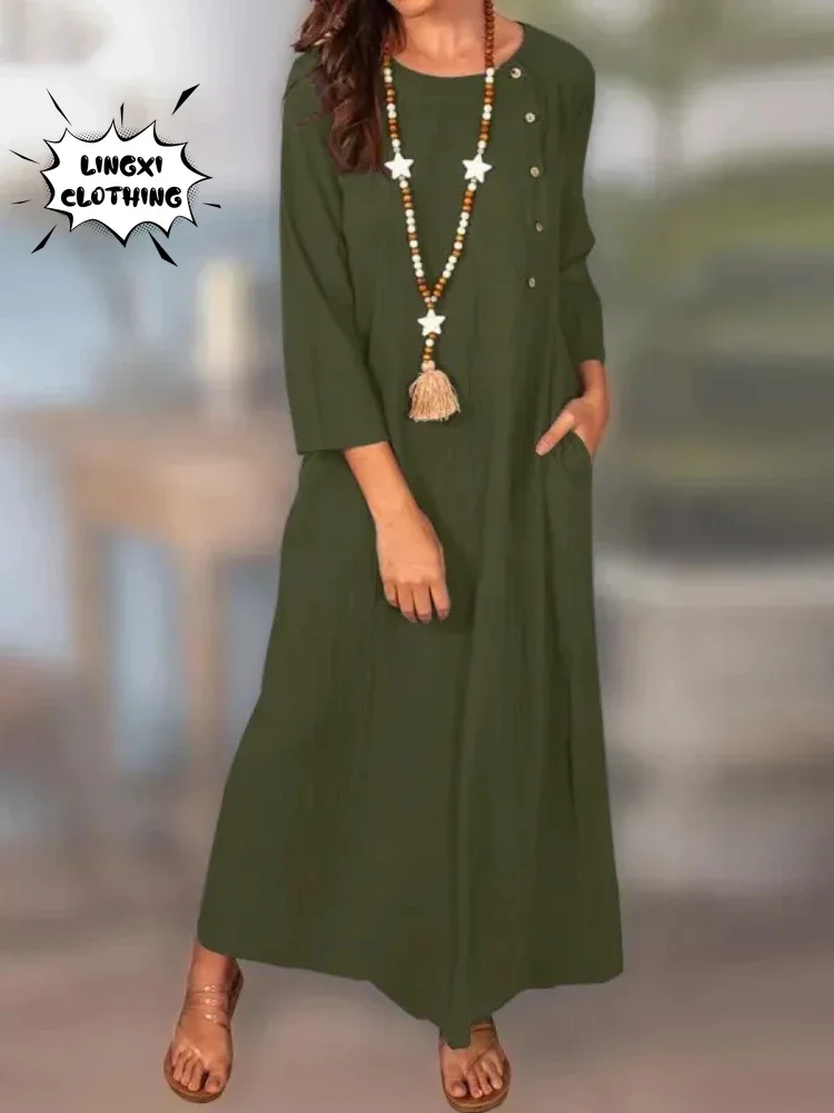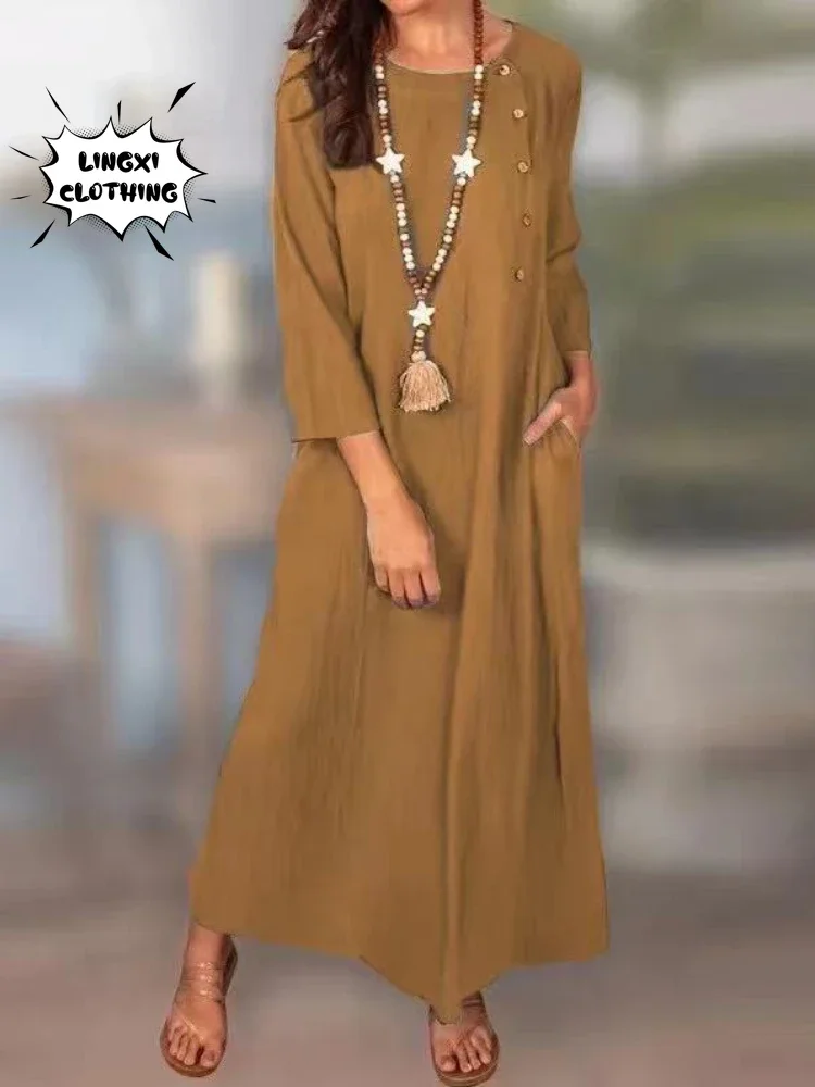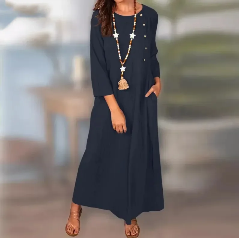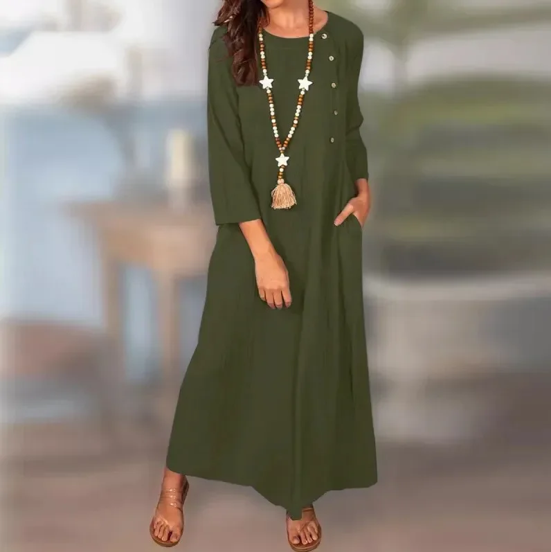 Summer Plus-Size Cotton Linen Dress for Women