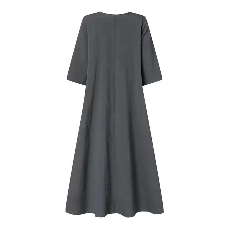 Made from a high-quality blend of cotton, linen, and ramie, this dress is breathable, lightweight, and soft against the skin. The slightly stretchy fabric ensures a relaxed fit while allowing freedom of movement. It is suitable for warm weather, keeping you comfortable and stylish all season long.