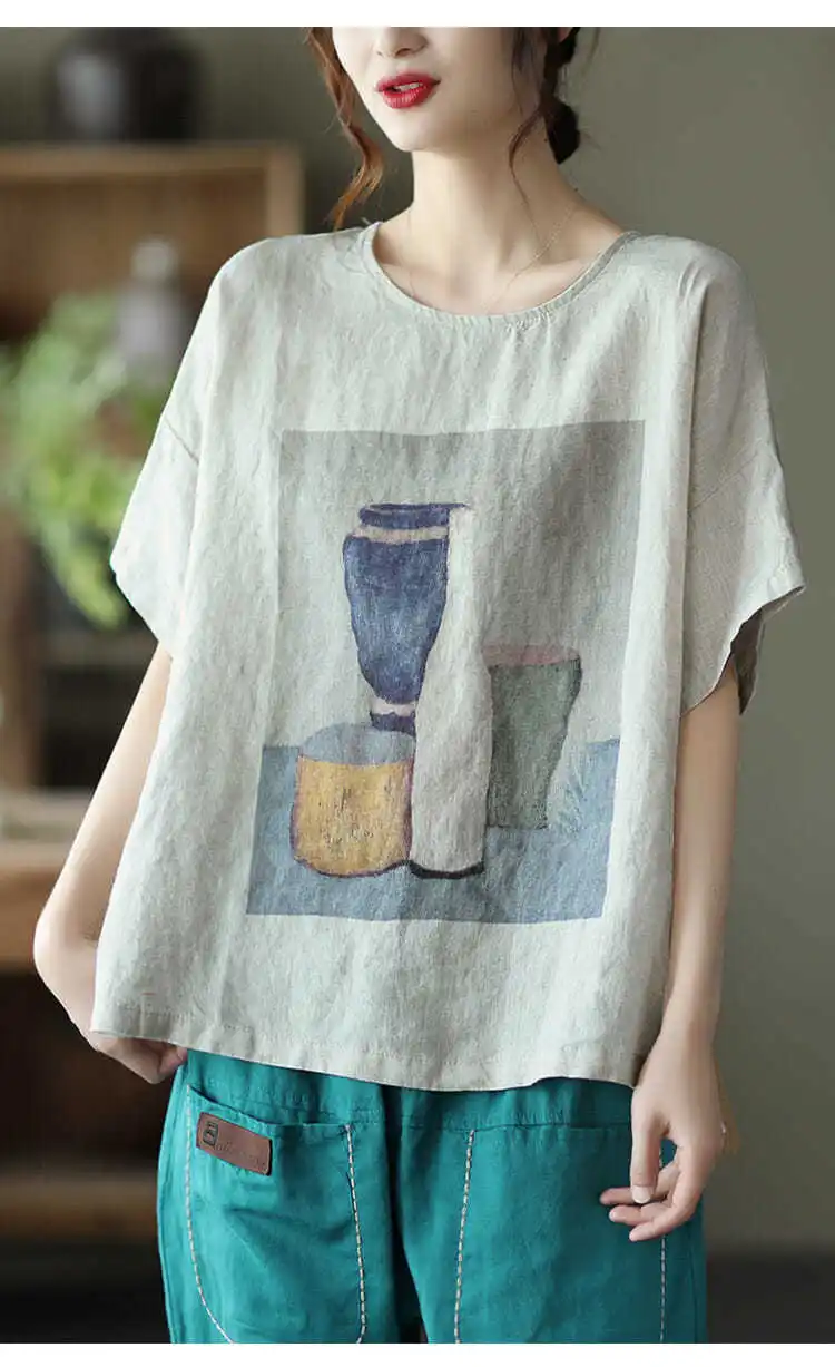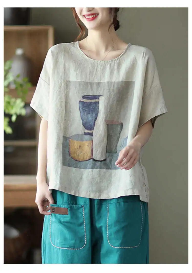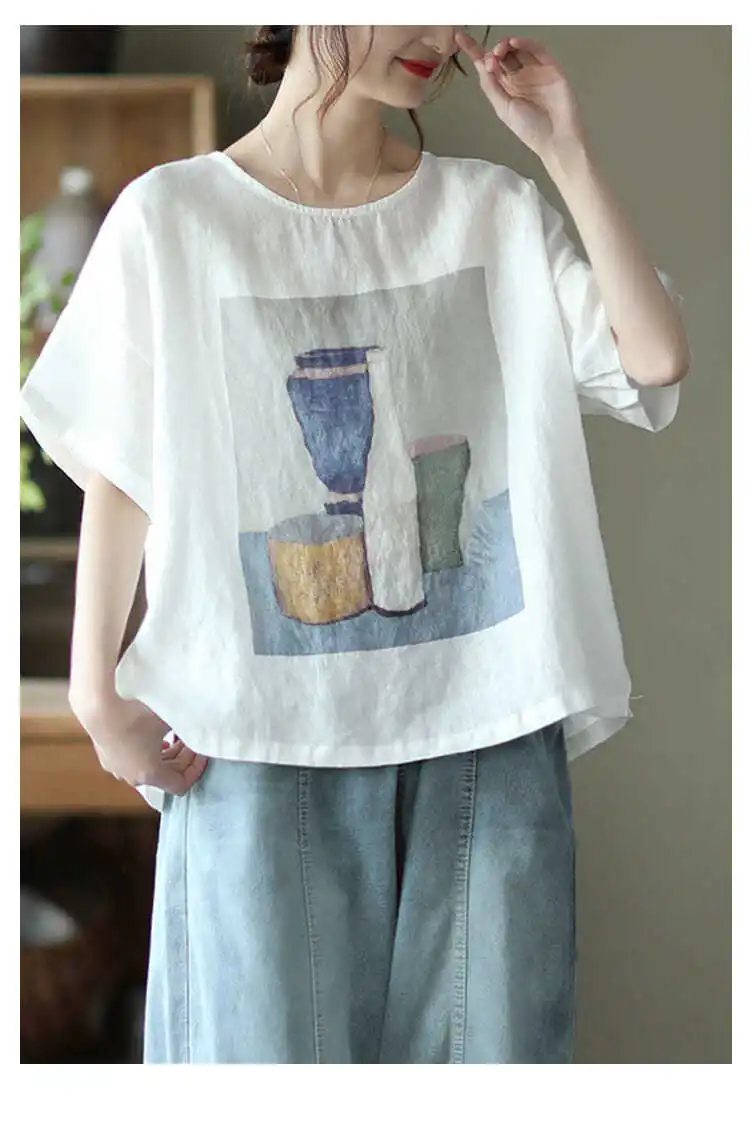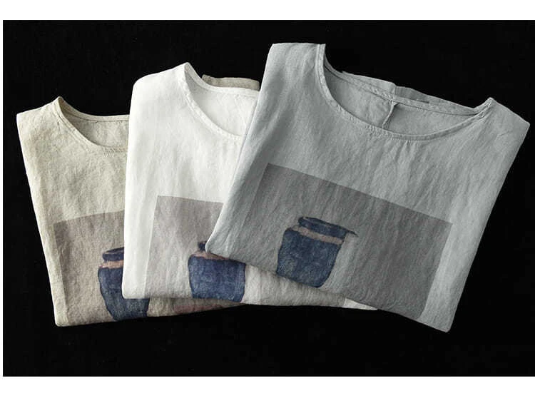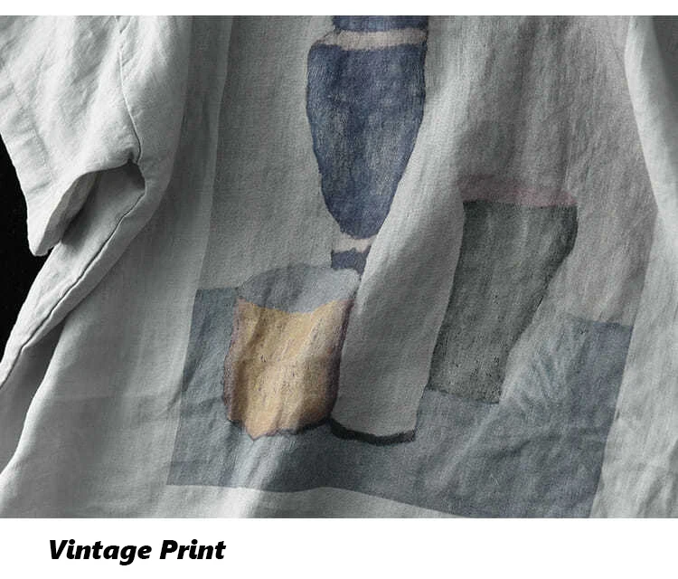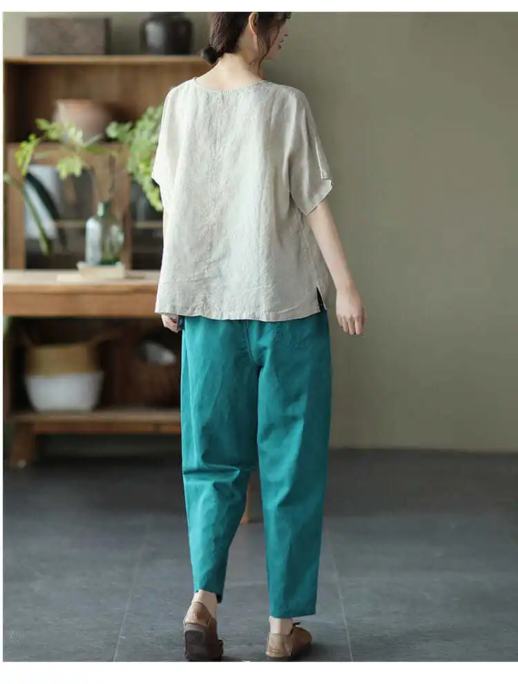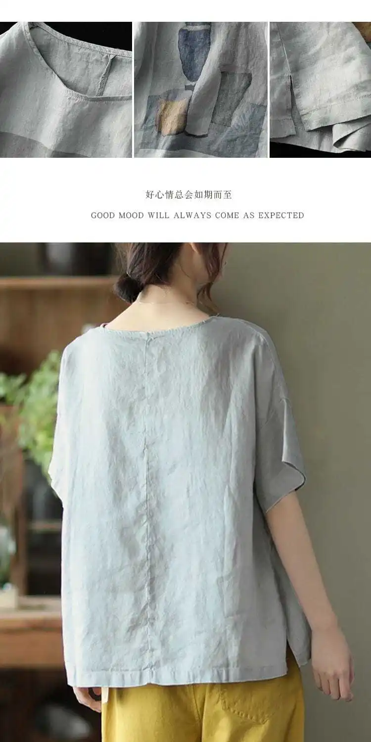 Vintage Cotton Linen Women’s Loose Summer Casual Blouse