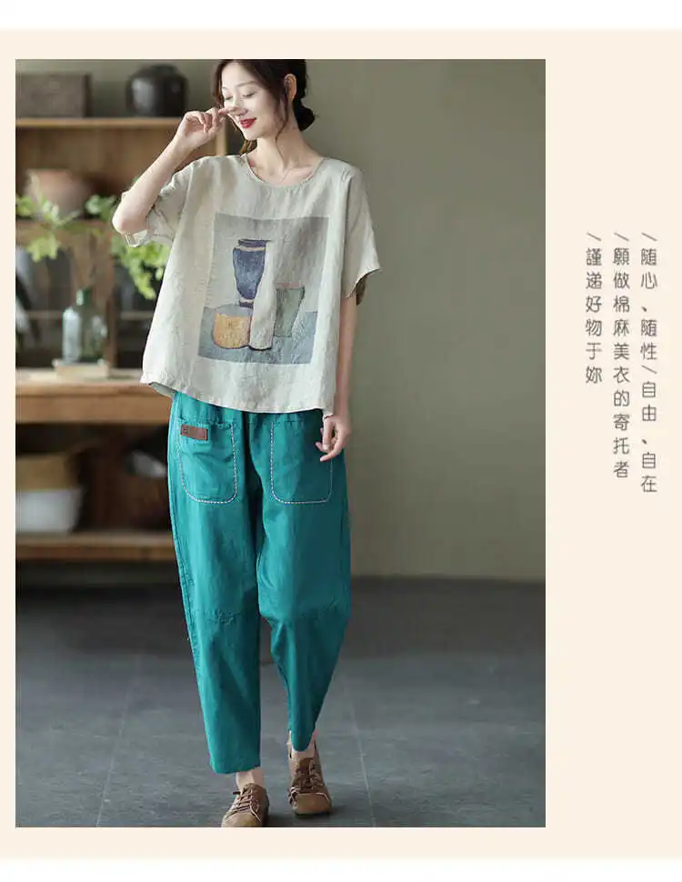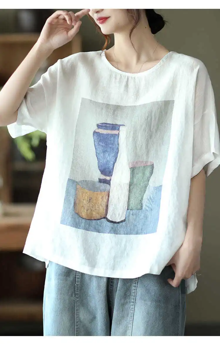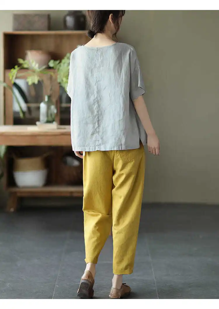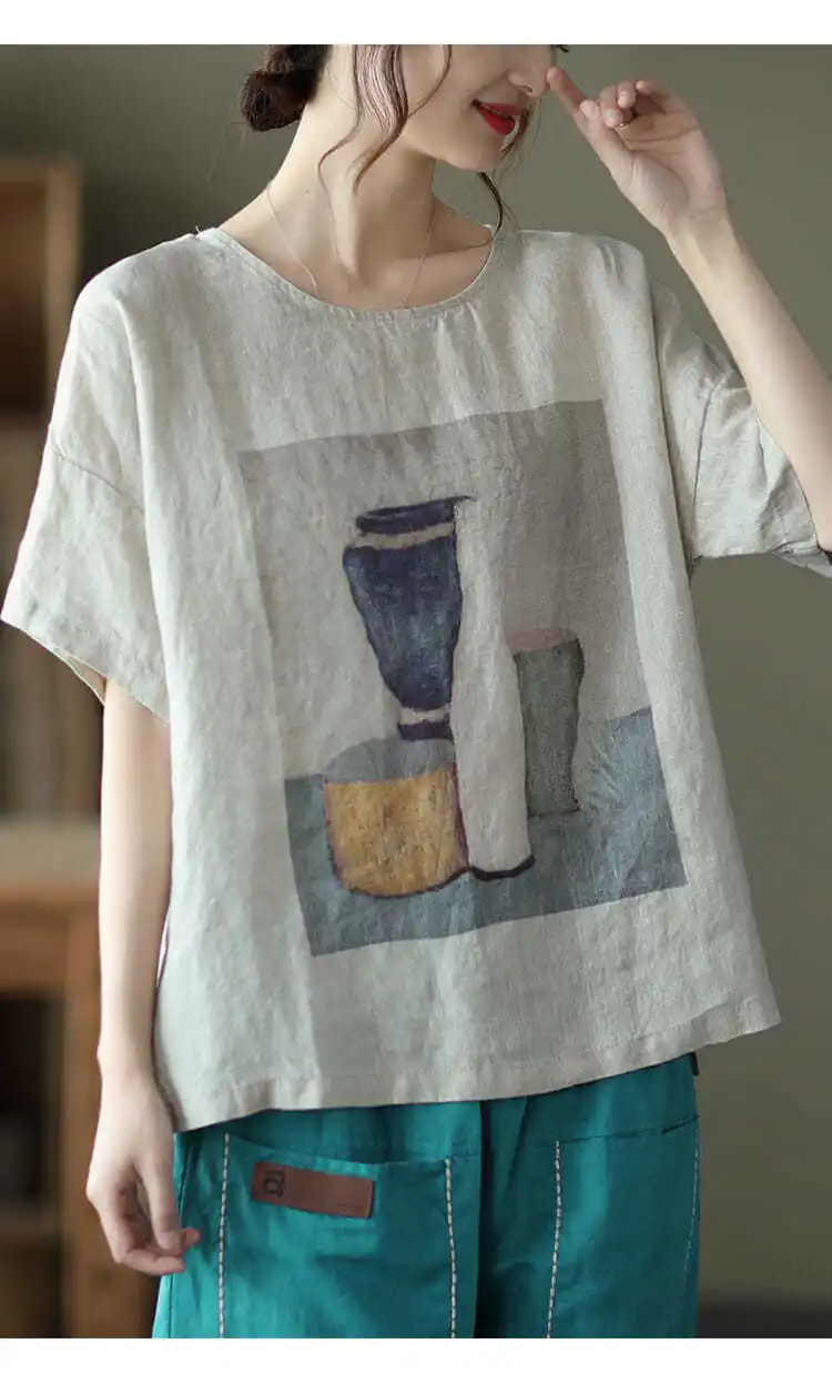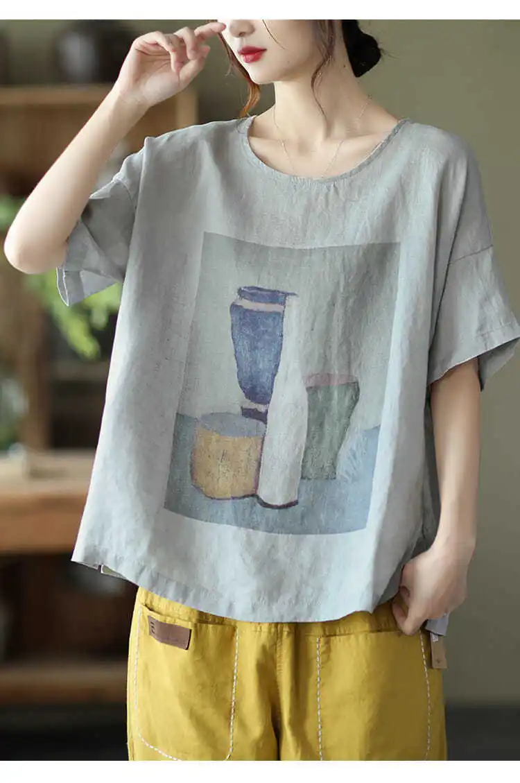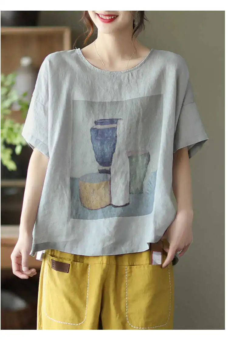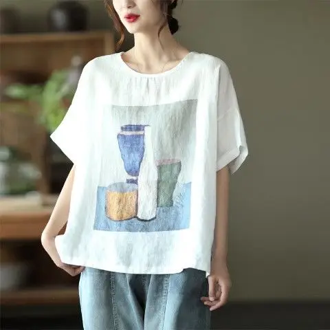 Vintage Cotton Linen Women’s Loose Summer Casual Blouse