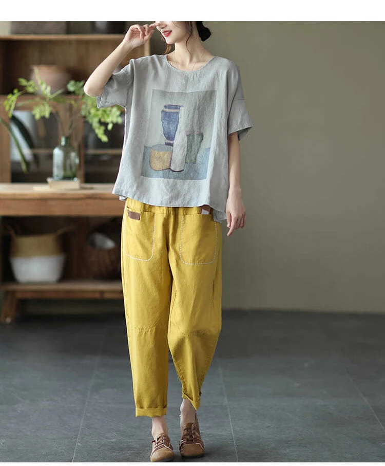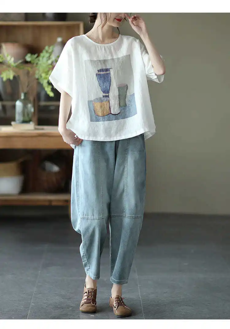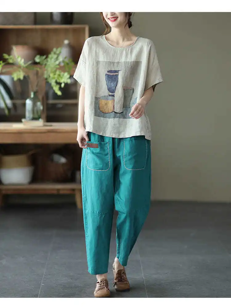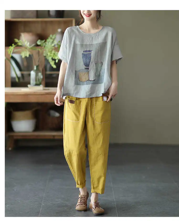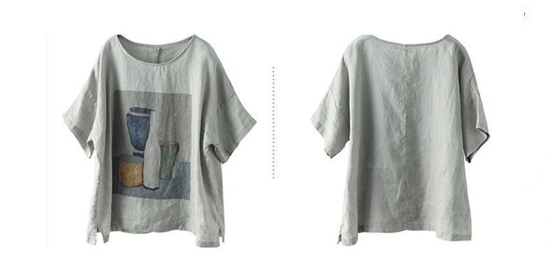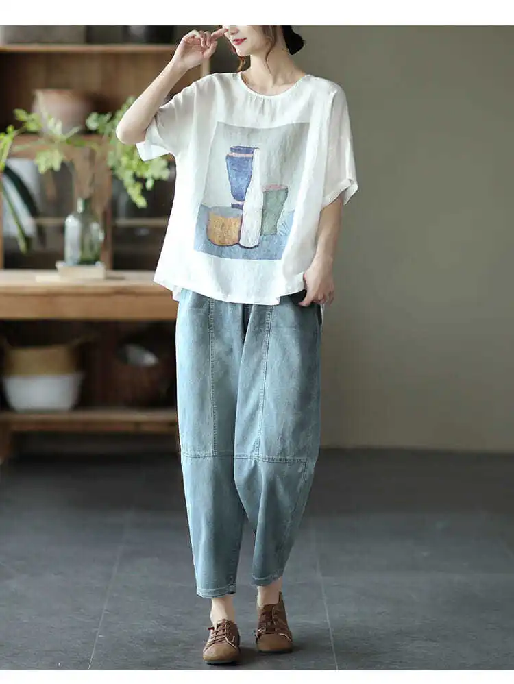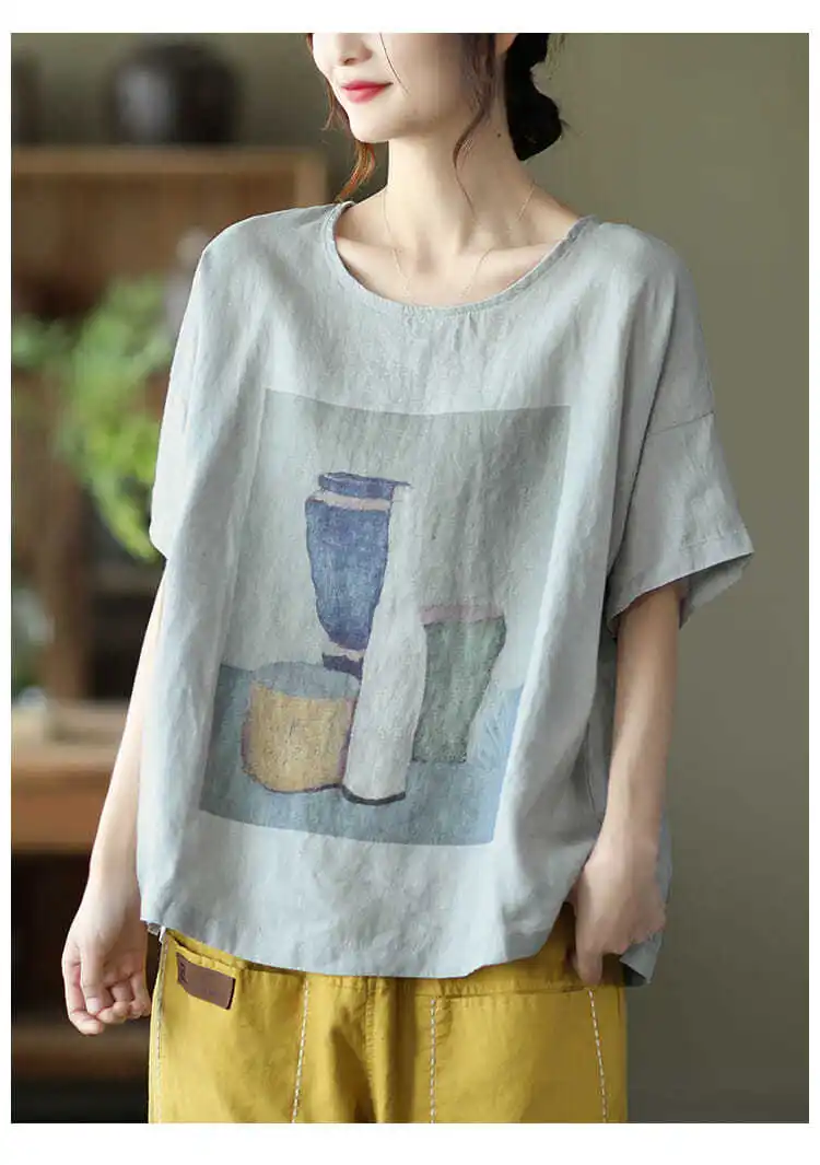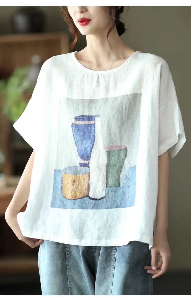 Vintage Cotton Linen Women’s Loose Summer Casual Blouse