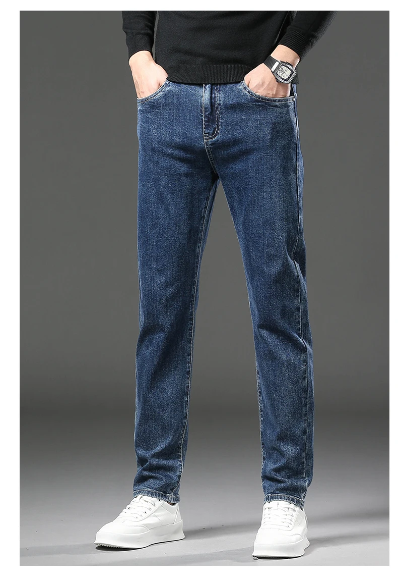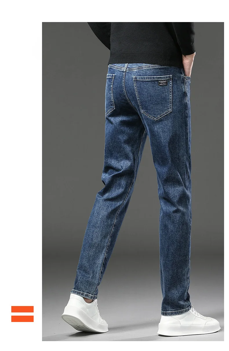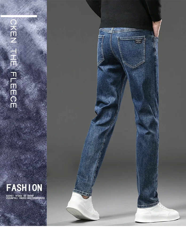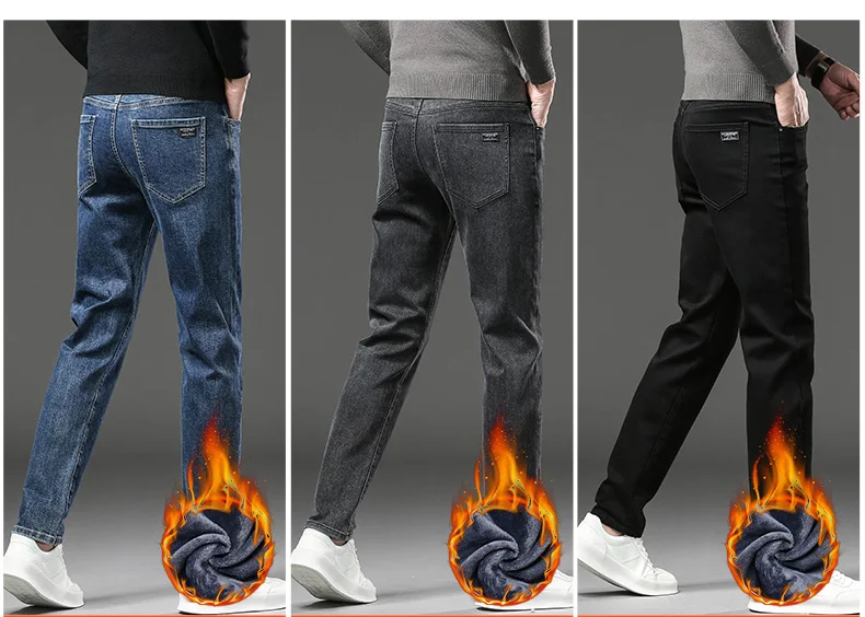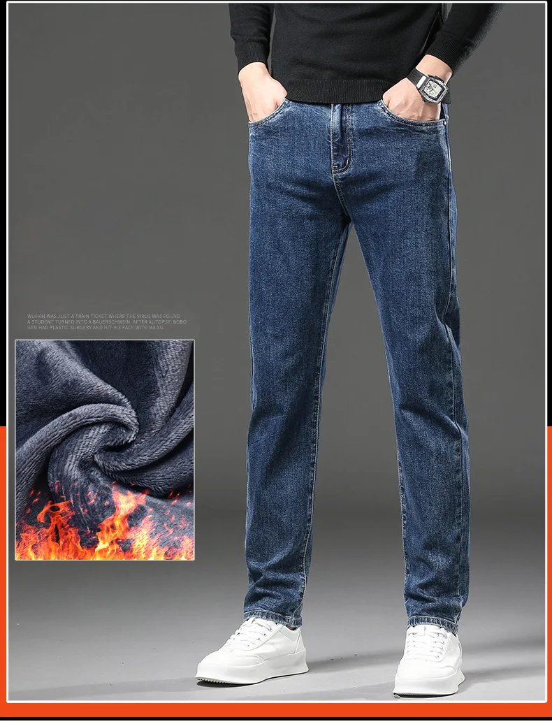 Winter Fleece Thick Warm Jeans Men’s Slim Straight Elastic Denim Pants Casual Male Clothing Fashion Plush Trousers