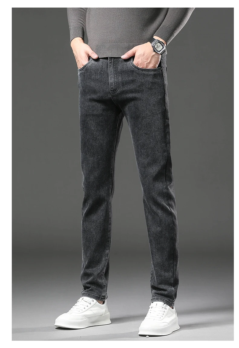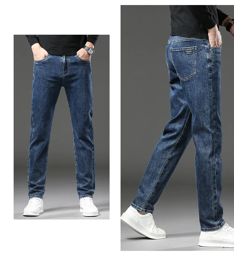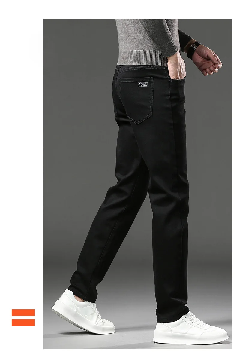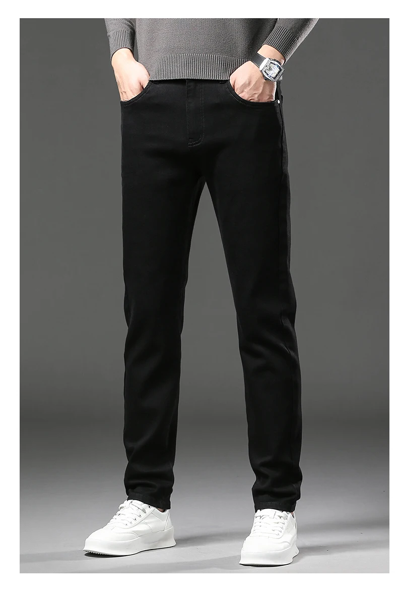 Winter Fleece Thick Warm Jeans Men’s Slim Straight Elastic Denim Pants Casual Male Clothing Fashion Plush Trousers