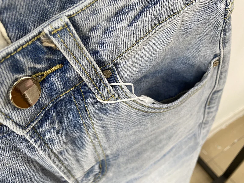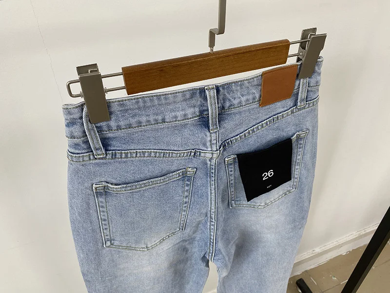 Made from premium cotton denim, the jeans are soft, breathable, and long-lasting. The high-waist design provides a secure and flattering fit. In addition, the slim straight cut enhances your natural silhouette, creating a sleek and modern look. The light wash adds a timeless touch that matches a wide variety of tops.