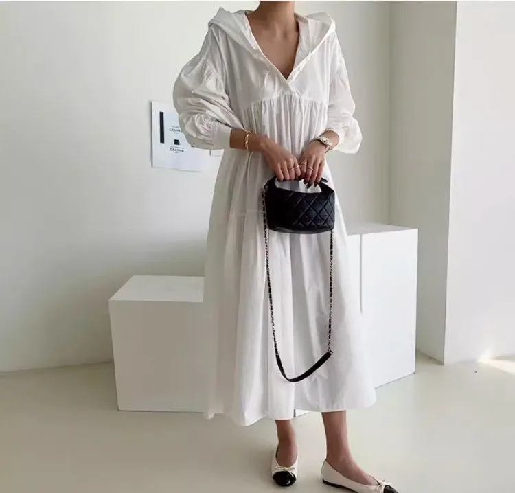 Pair this hooded dress with ankle boots and a crossbody bag for a casual city look. Alternatively, style it with sneakers for an easy weekend outfit. Add a long coat during winter to layer up without losing elegance.