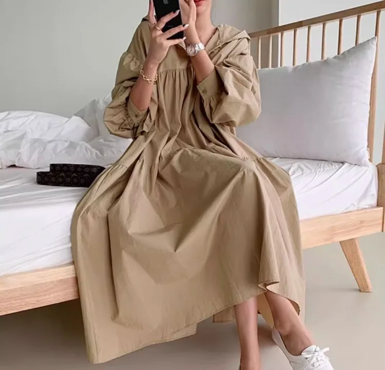 The Women’s Hooded Cotton Linen A-Line Dress blends casual comfort with chic style. Designed with a relaxed silhouette, it is perfect for autumn and winter wear. Moreover, the mid-calf length and hooded neckline make it both stylish and practical. Whether you are at home, running errands, or attending casual outings, this dress adapts with ease.