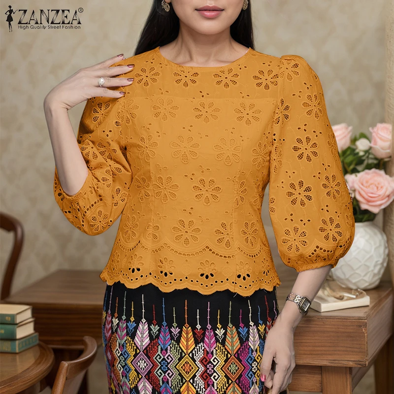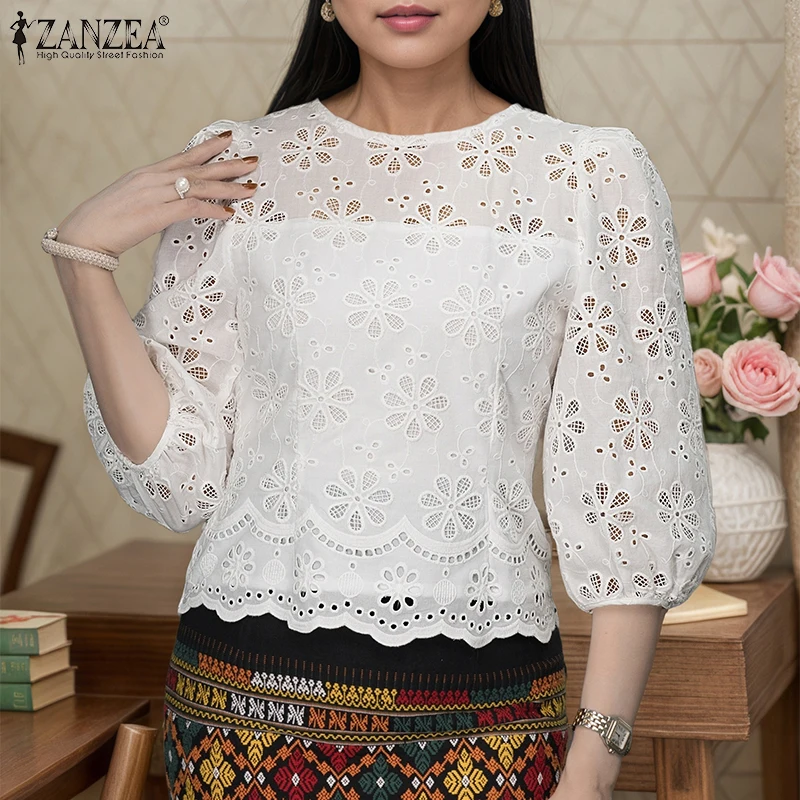 ZANZEA Cotton Lace Tunic – Oversized Casual Women Blouse