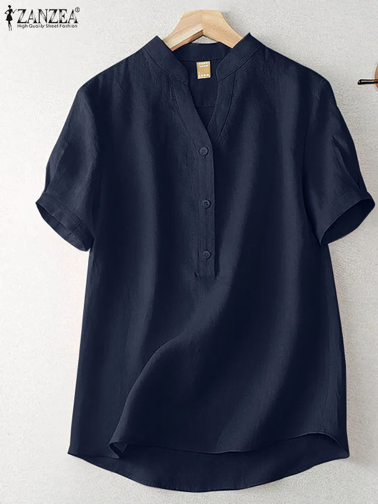 ZANZEA Women’s Summer Elegant Cotton Short Sleeve Blouse
